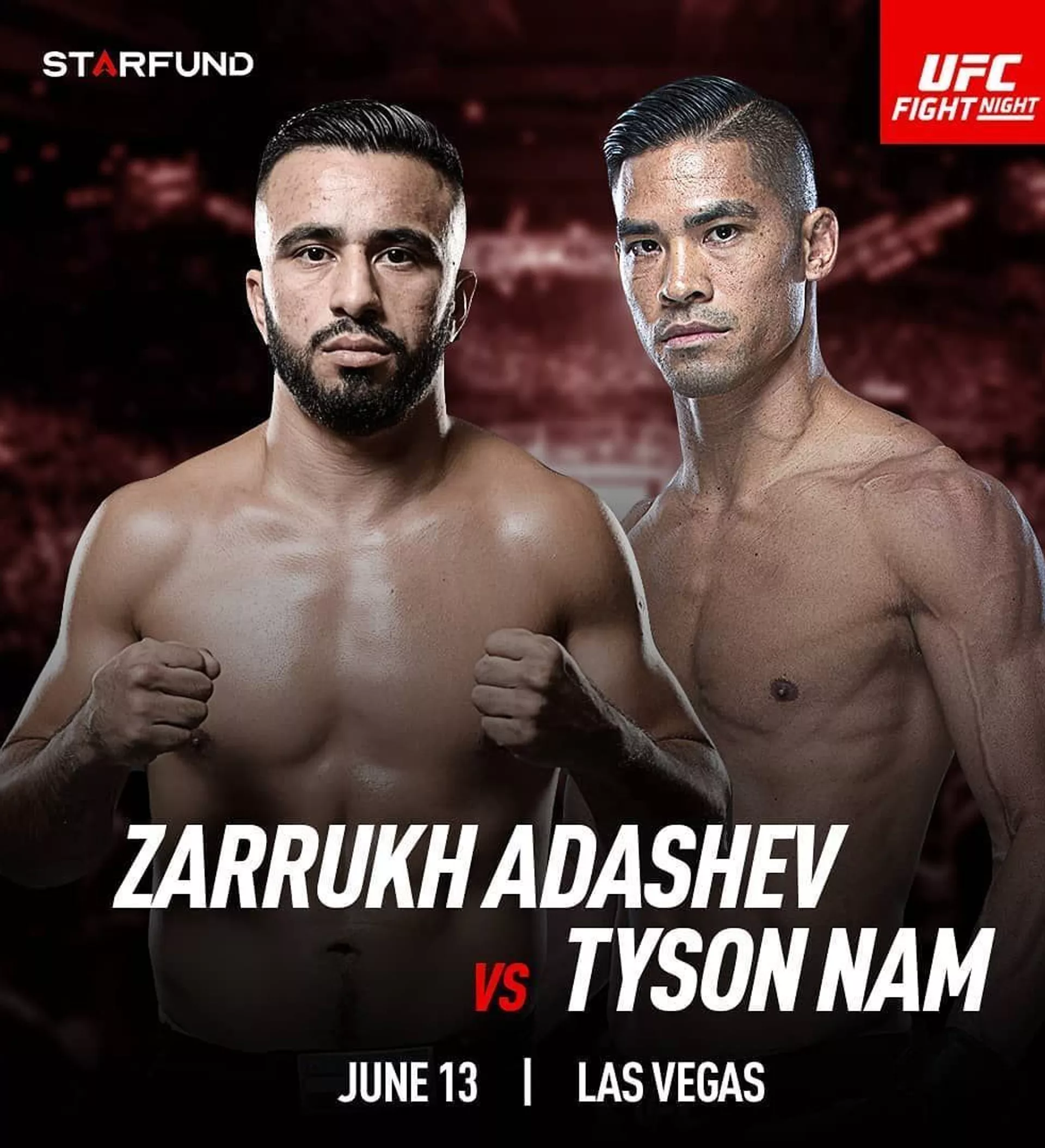 "13 июня второй узбекский боец Заррух Адашев проведет первый бой в UFC fight night 172 в Лас-Вегасе против американца Тайсона Нэма", - говорится в сообщении.