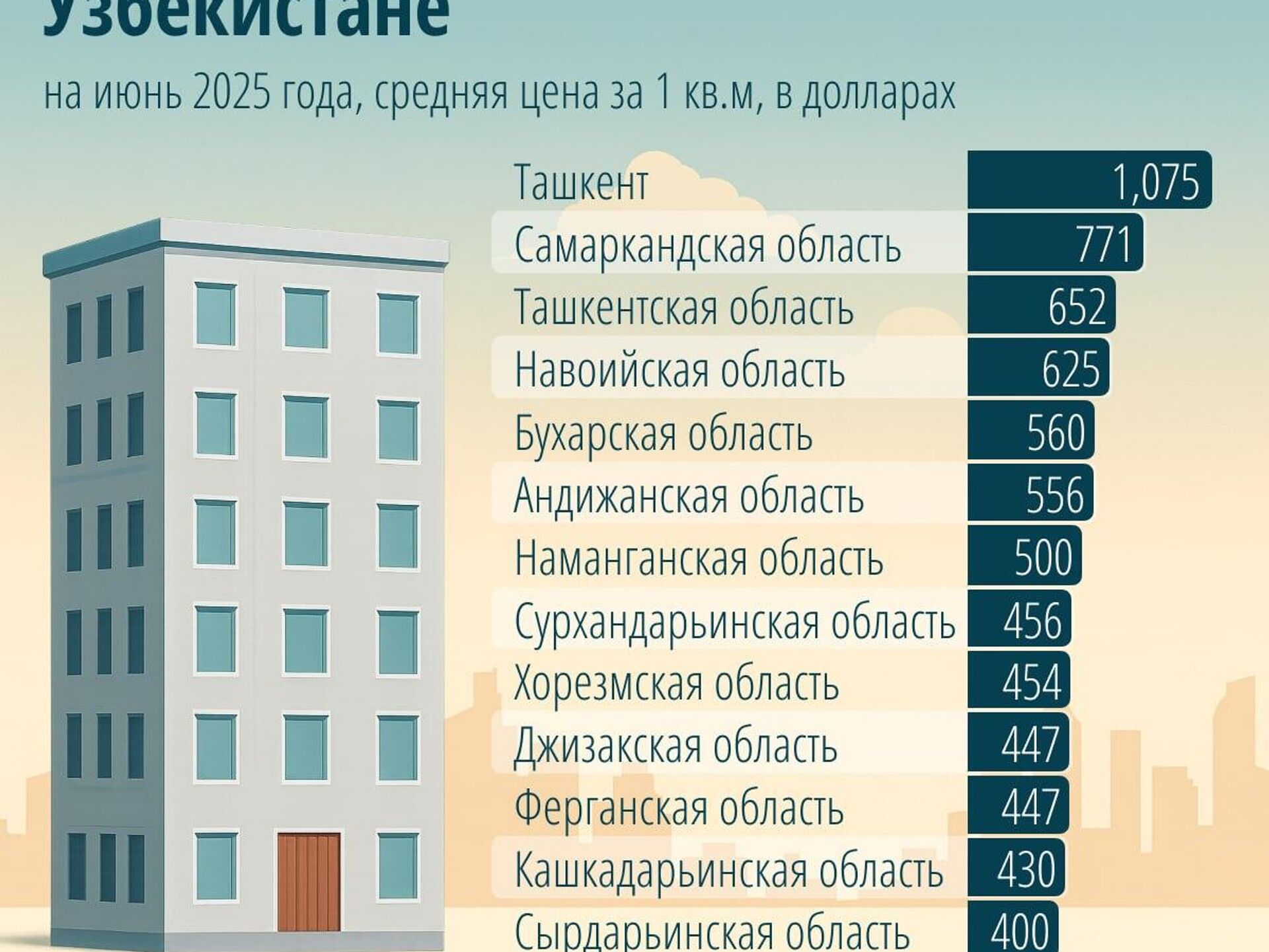 Цены на вторичное жилье в остальных регионах - в инфографике @SputnikUzbekistan.