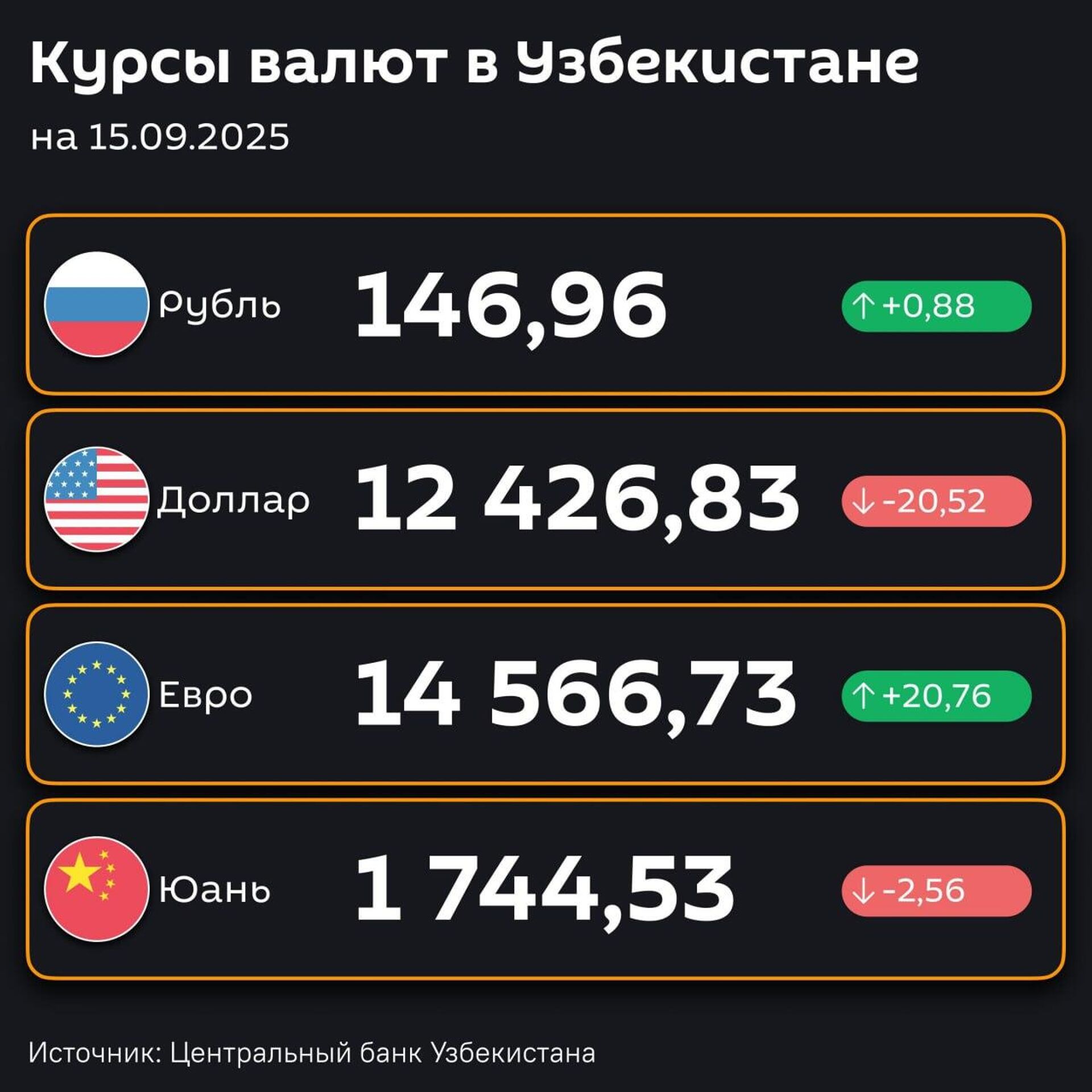 Рубль подорожал, доллар подешевел — ЦБ РУз установил новые курсы валют по отношению к суму с 15 сентября. @SputnikUzbekistan