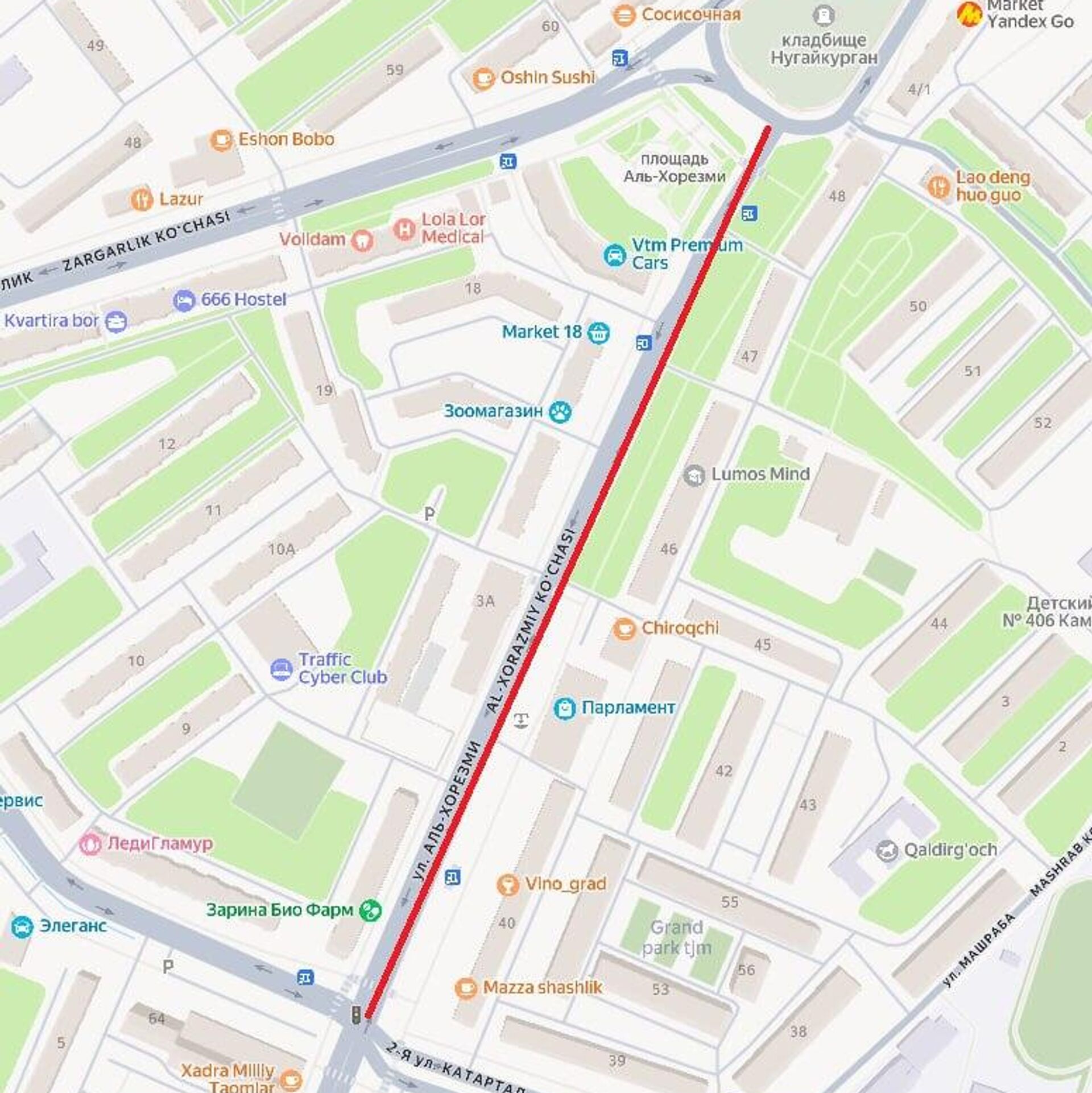 Из-за проведения мероприятия на новой гастроулице Аль-Хорезми временно перекроют движение на части улицы. С 9.00 10 октября до 9.00 13 октября закроют участок от объездной дороги ул. Аль-Хорезми до ул. Катартал-2.@SputnikUzbekistan