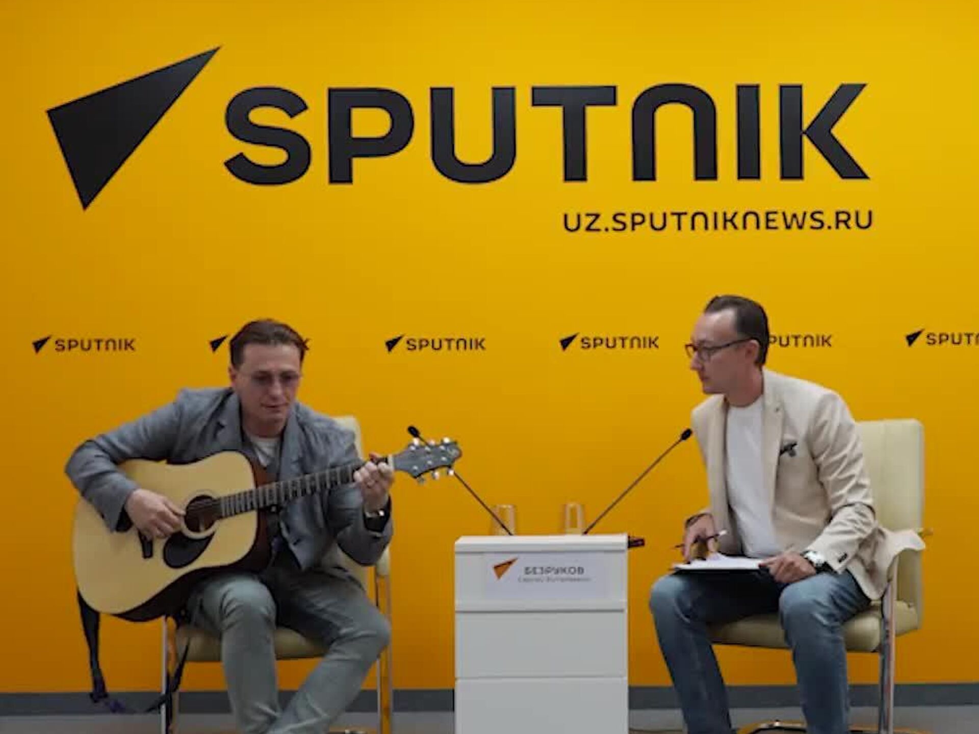 Народный артист России Сергей Безруков исполнил легендарную песню Владимира Высоцкого "Кони привередливые" во время пресс-конференции в МПЦ @SputnikUzbekistan