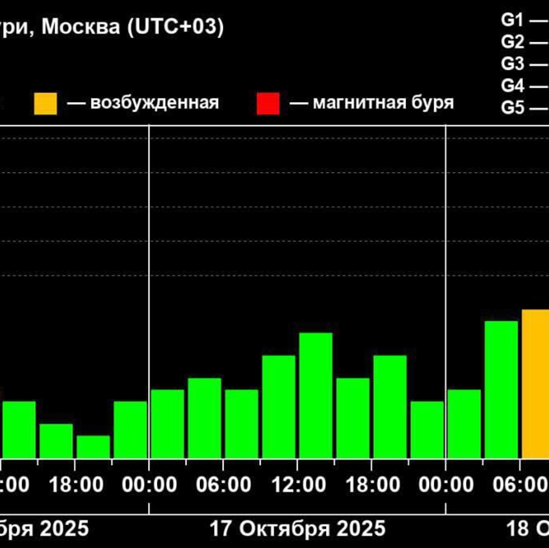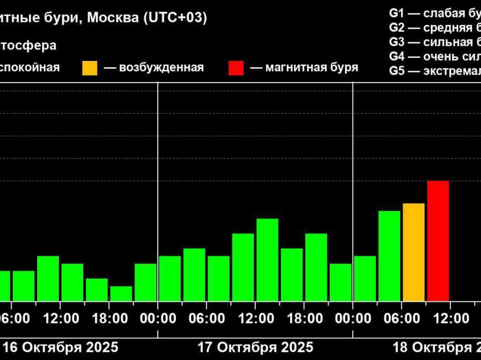 Геомагнитная обстановка полностью стабилизируется к середине дня 20 октября.