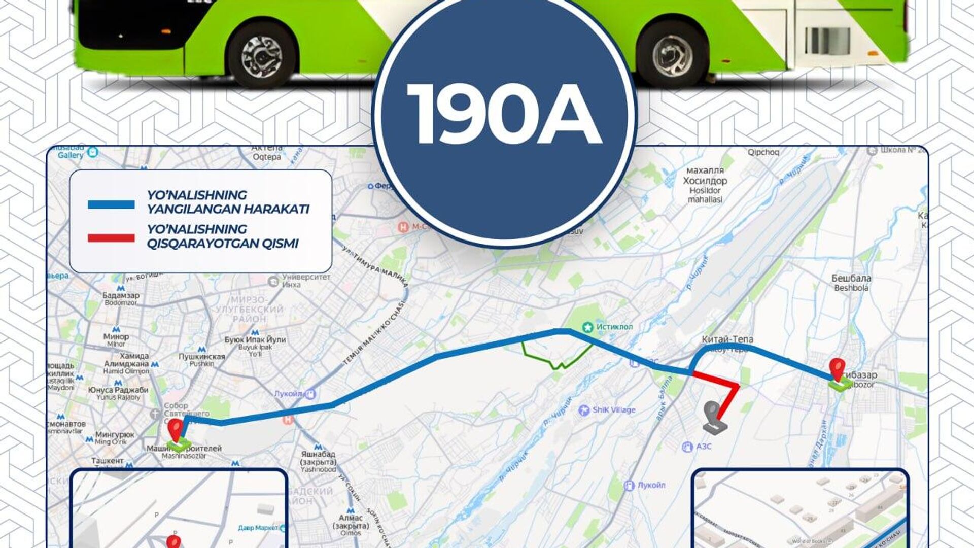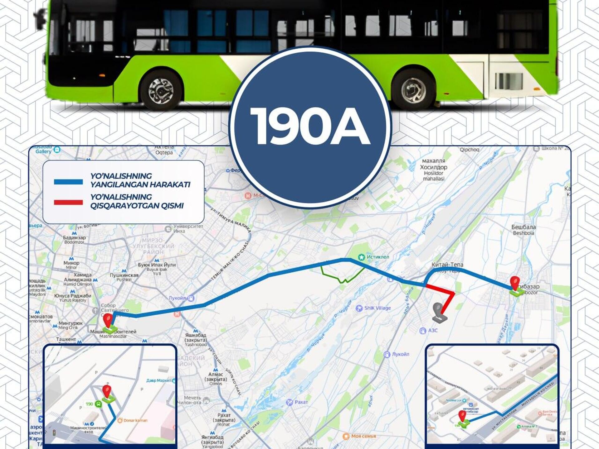 С 22 октября участок маршрута по улице Янги Узбекистон до остановки “Янги Тошкент” сокращен.
