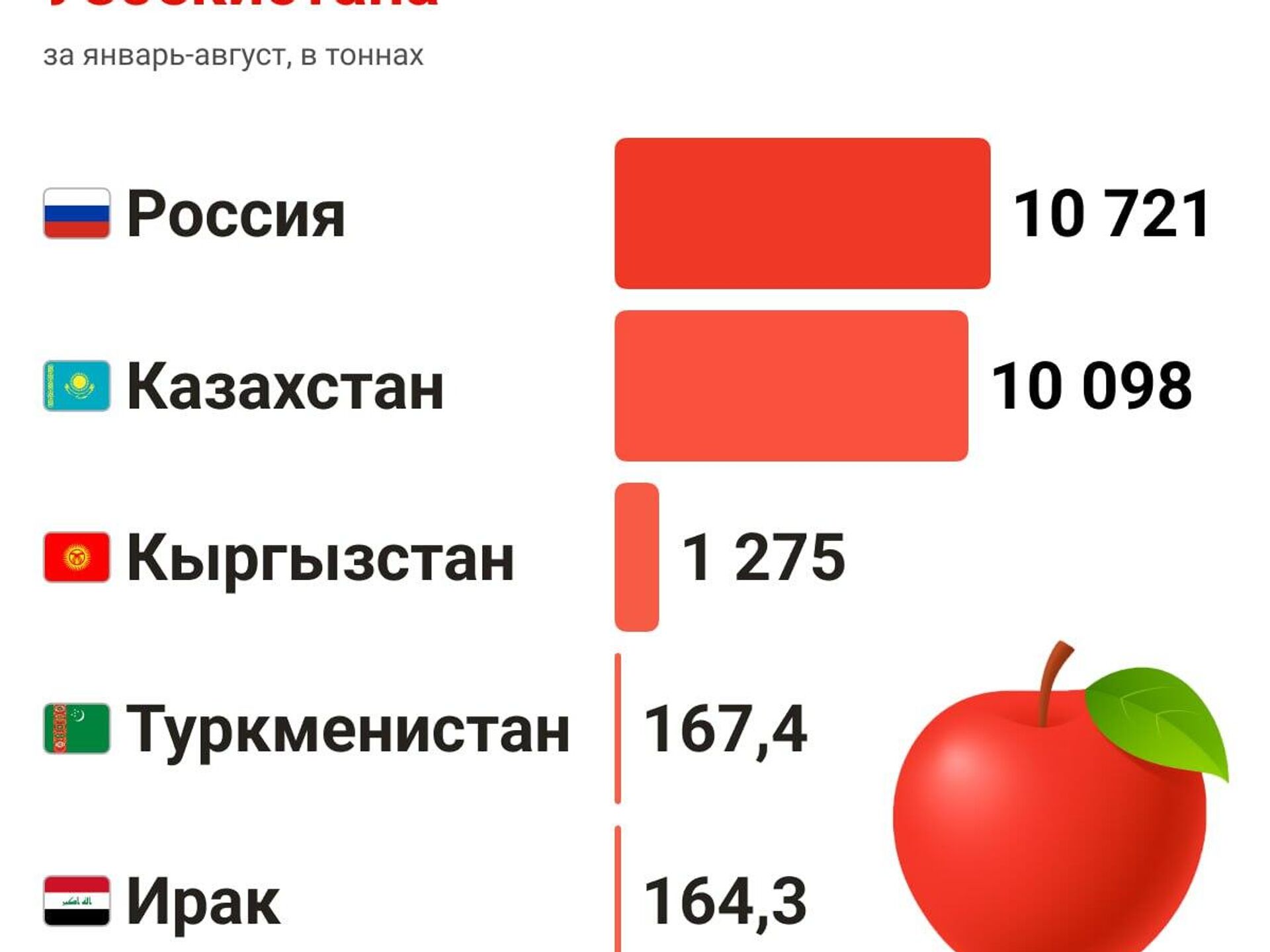 За 8 месяцев текущего года Узбекистан экспортировал более 22 тысяч тонн яблок.