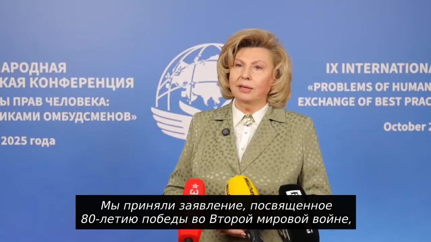 Участники заседания Евразийского альянса омбудсменов приняли заявление, посвященное 80-летию Победы во Второй мировой войне.Уполномоченный по правам человека России Татьяна Москалькова рассказала корреспонденту @SputnikUzbekistan, о чем этот документ.