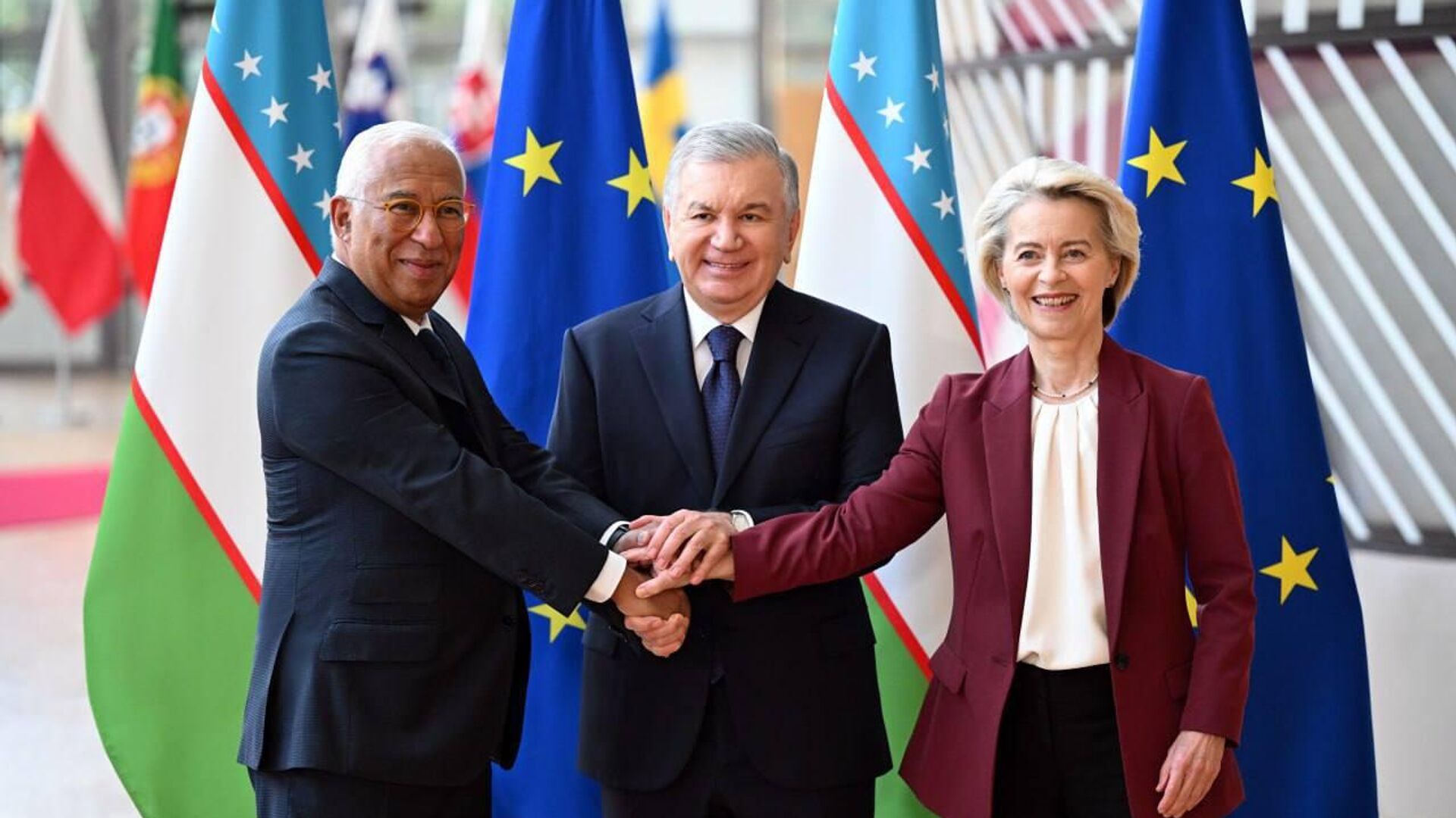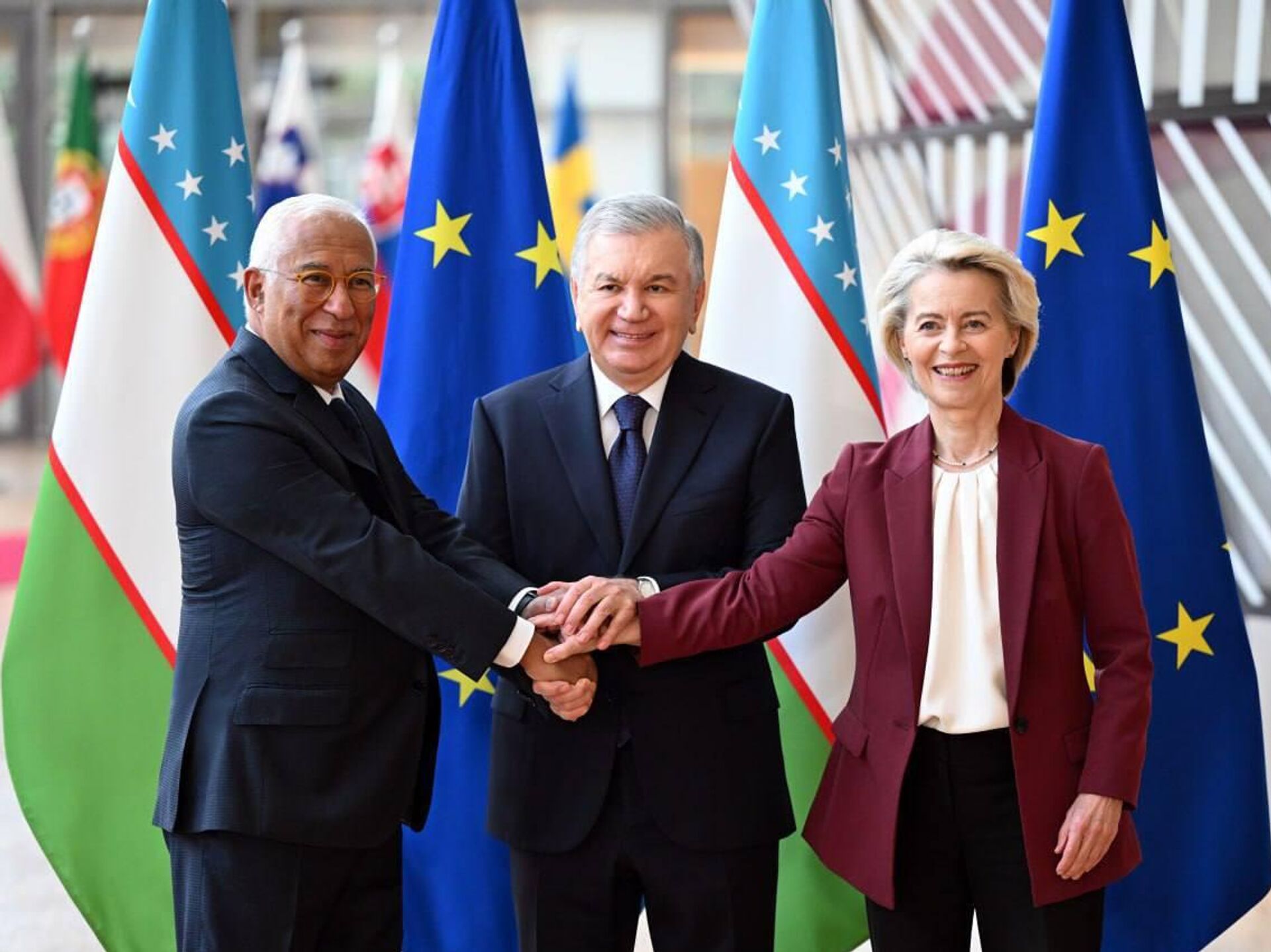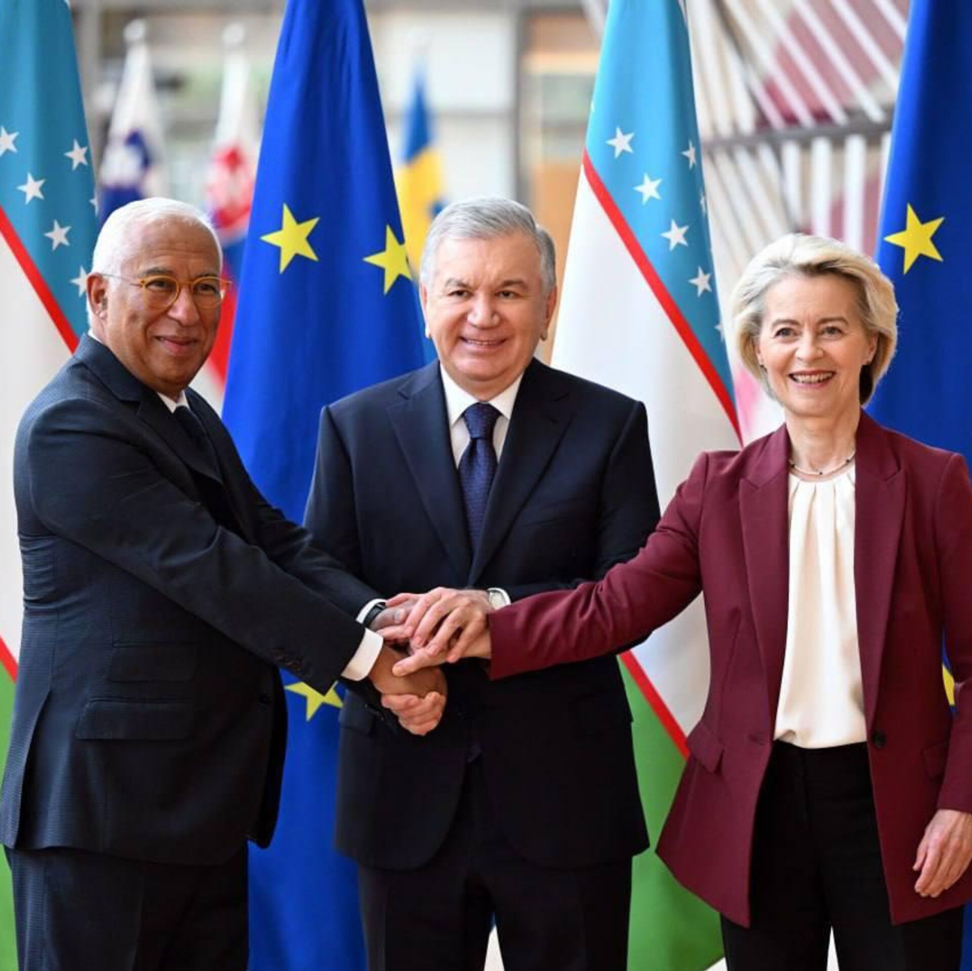 ТАШКЕНТ, 24 окт — Sputnik. В городе Брюсселе в присутствии президента Узбекистана Шавката Мирзиёева, президента Европейского совета Антониу Кошты и президента Европейской комиссии Урсулы фон дер Ляйен состоялась торжественная церемония подписания Соглашения о расширенном партнерстве и сотрудничестве между Республикой Узбекистан и Европейским Союзом. Об этом