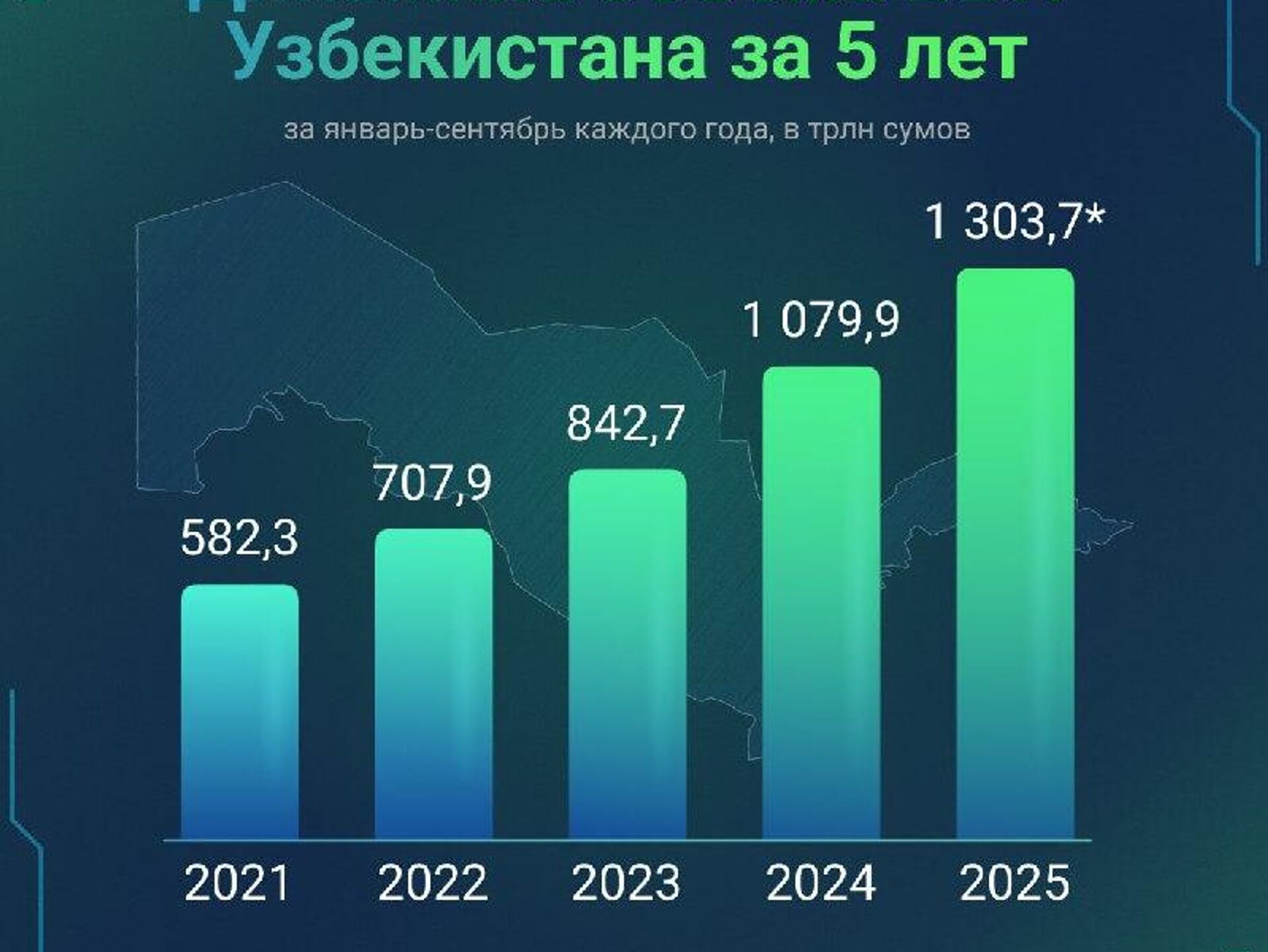 По предварительным данным, в январе-сентябре 2025 года объем ВВП Узбекистана составил 1 303,7 трлн сумов.