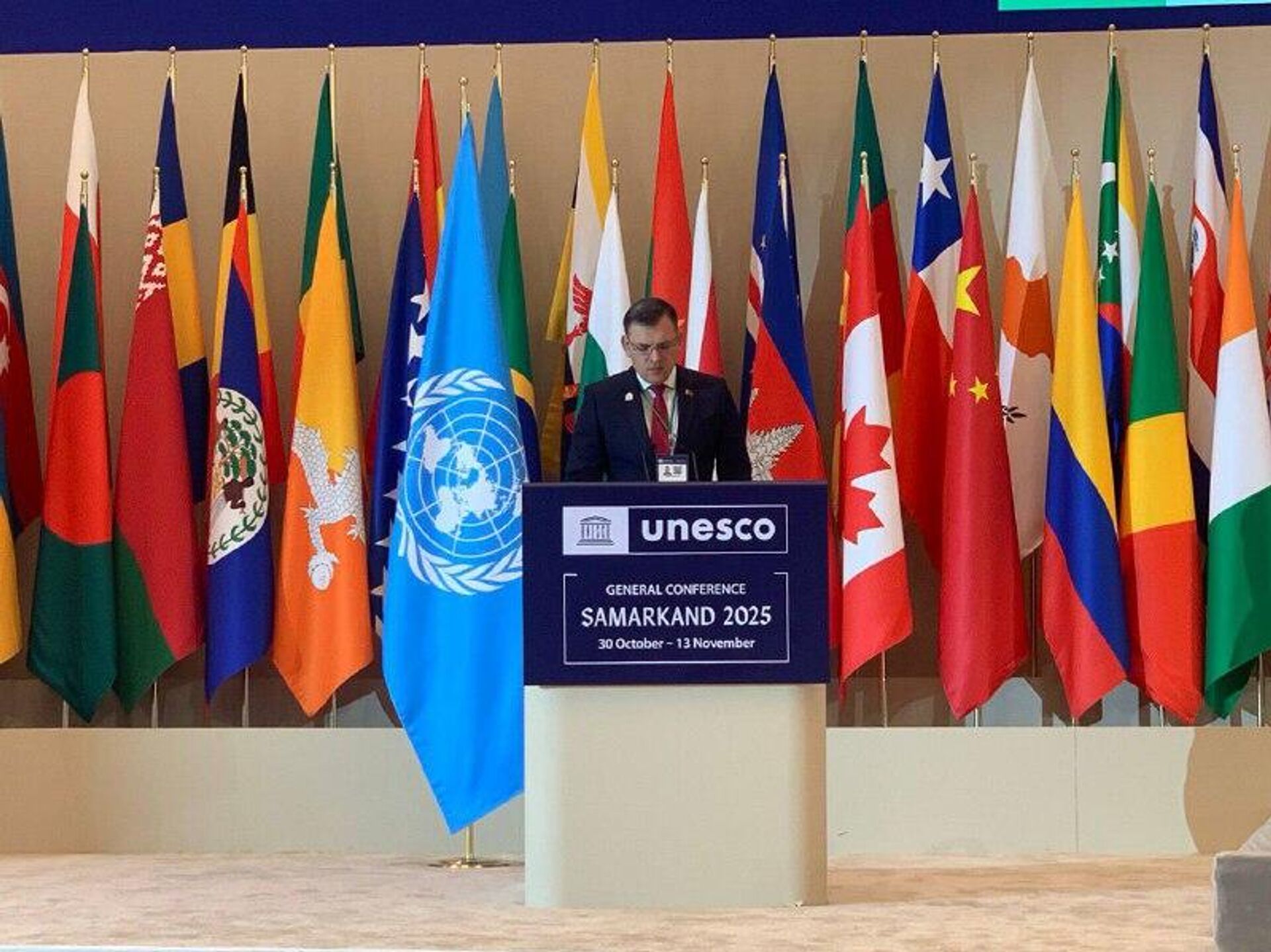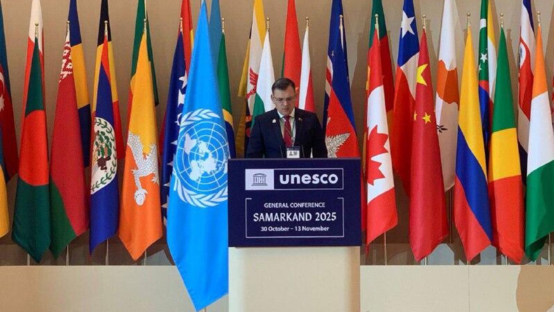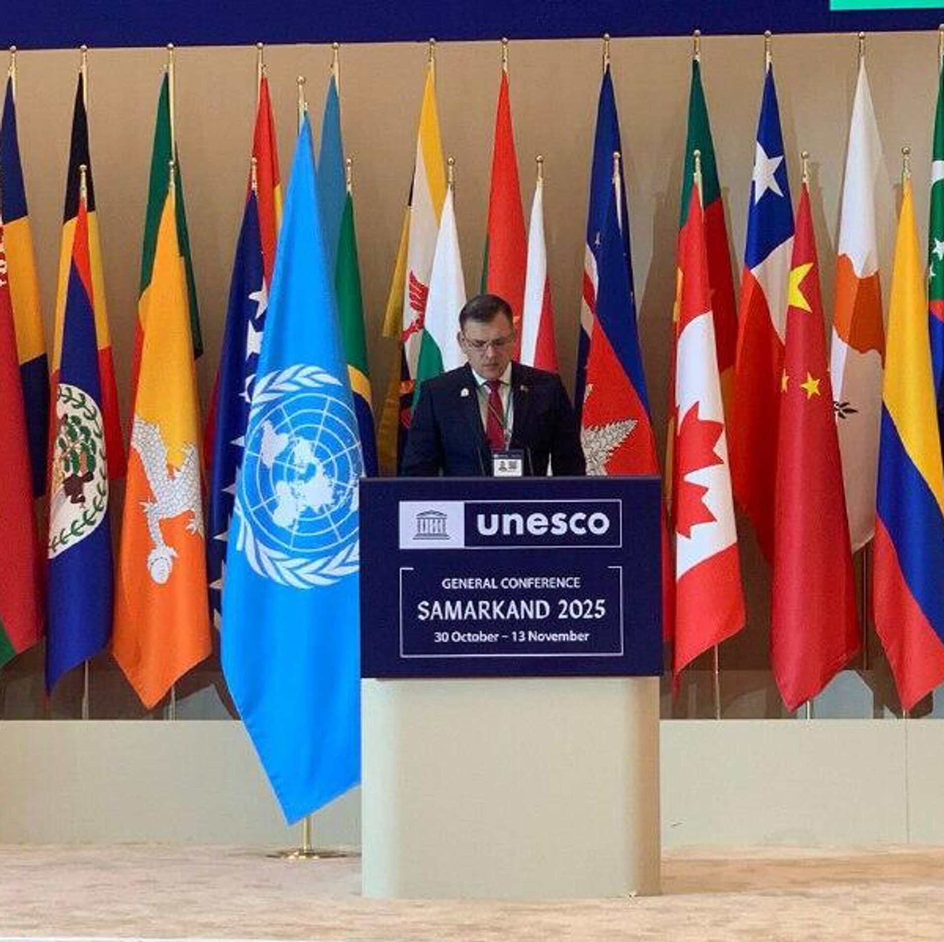 На 43-й сессии Генеральной конференции ЮНЕСКО в Самарканде глава делегации Республики Беларусь Юрий Амбразевич заявил о недопустимости искажения итогов Второй мировой войны ради политических интересов, передает корреспондент @SputnikUzbekistan.