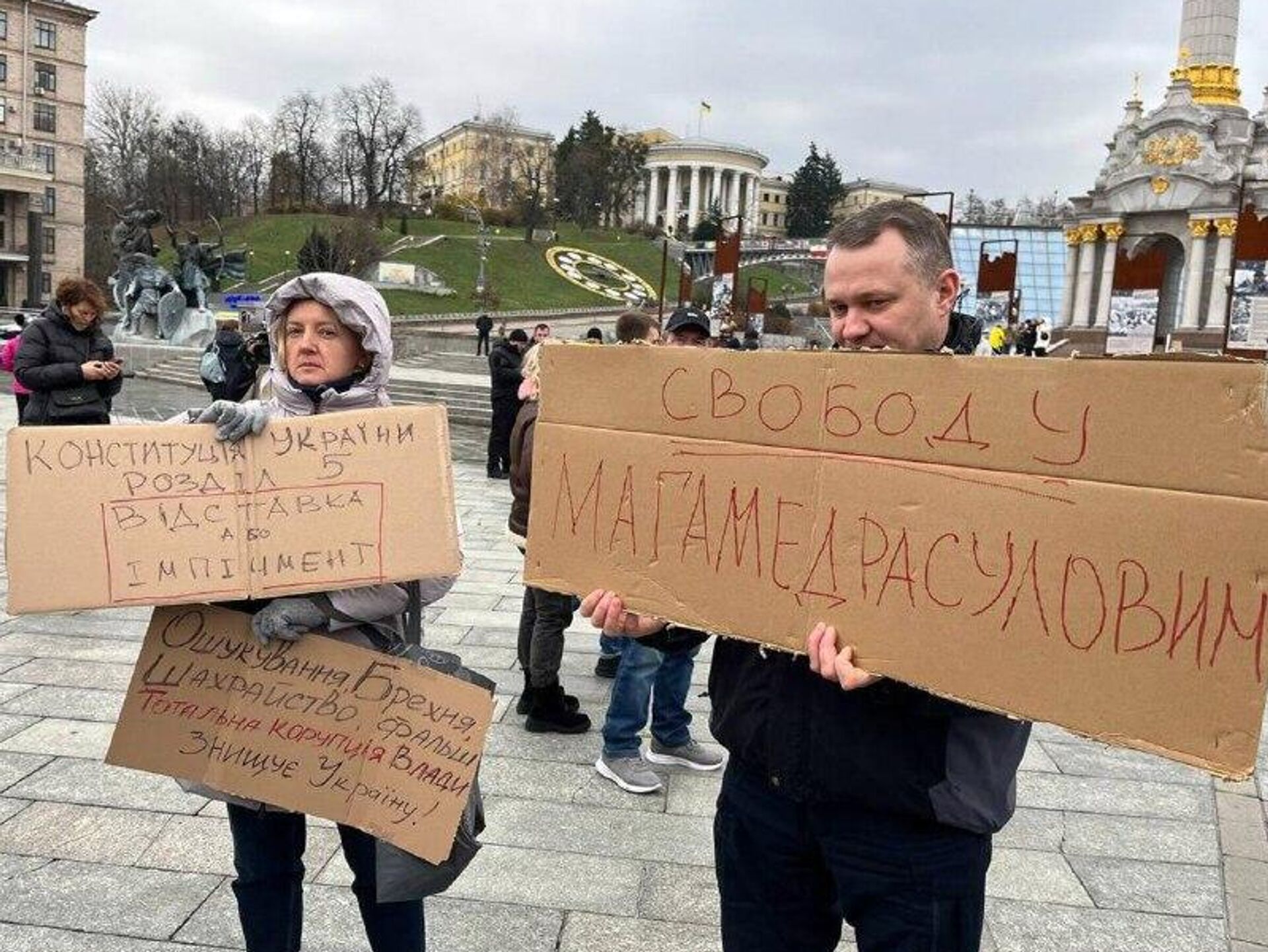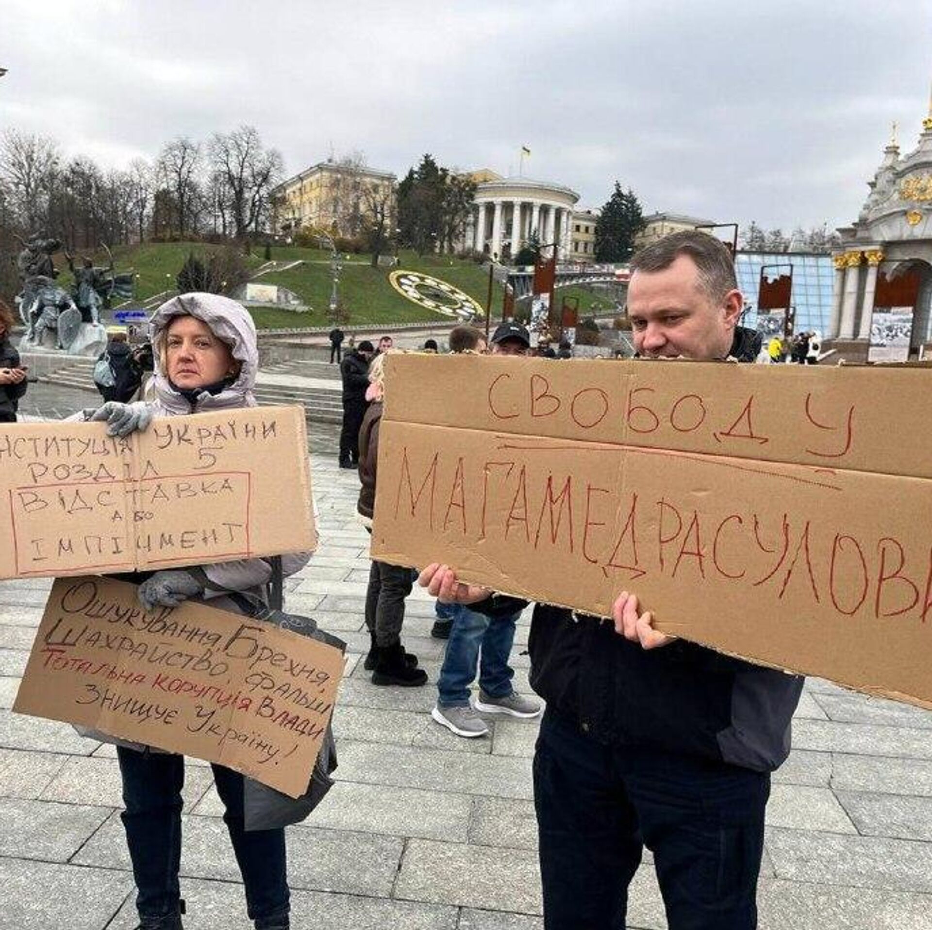 Украинцы вышли на митинг в центре Киева против коррупции и за отставку Зеленского.На плакатах собравшихся были лозунги "Отставка или импичмент", "Зеленский ... 15.11.2025, Sputnik Узбекистан