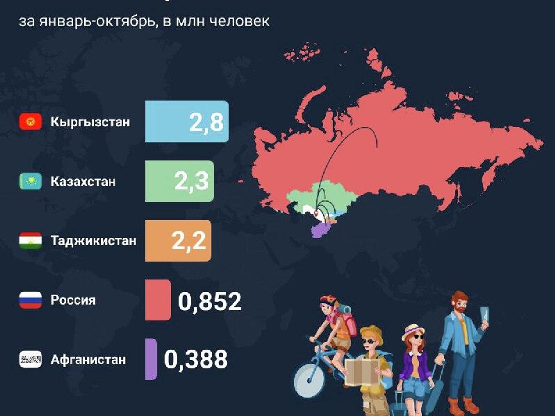 Больше всего туристов в этом году – из Кыргызстана: 2,8 млн.