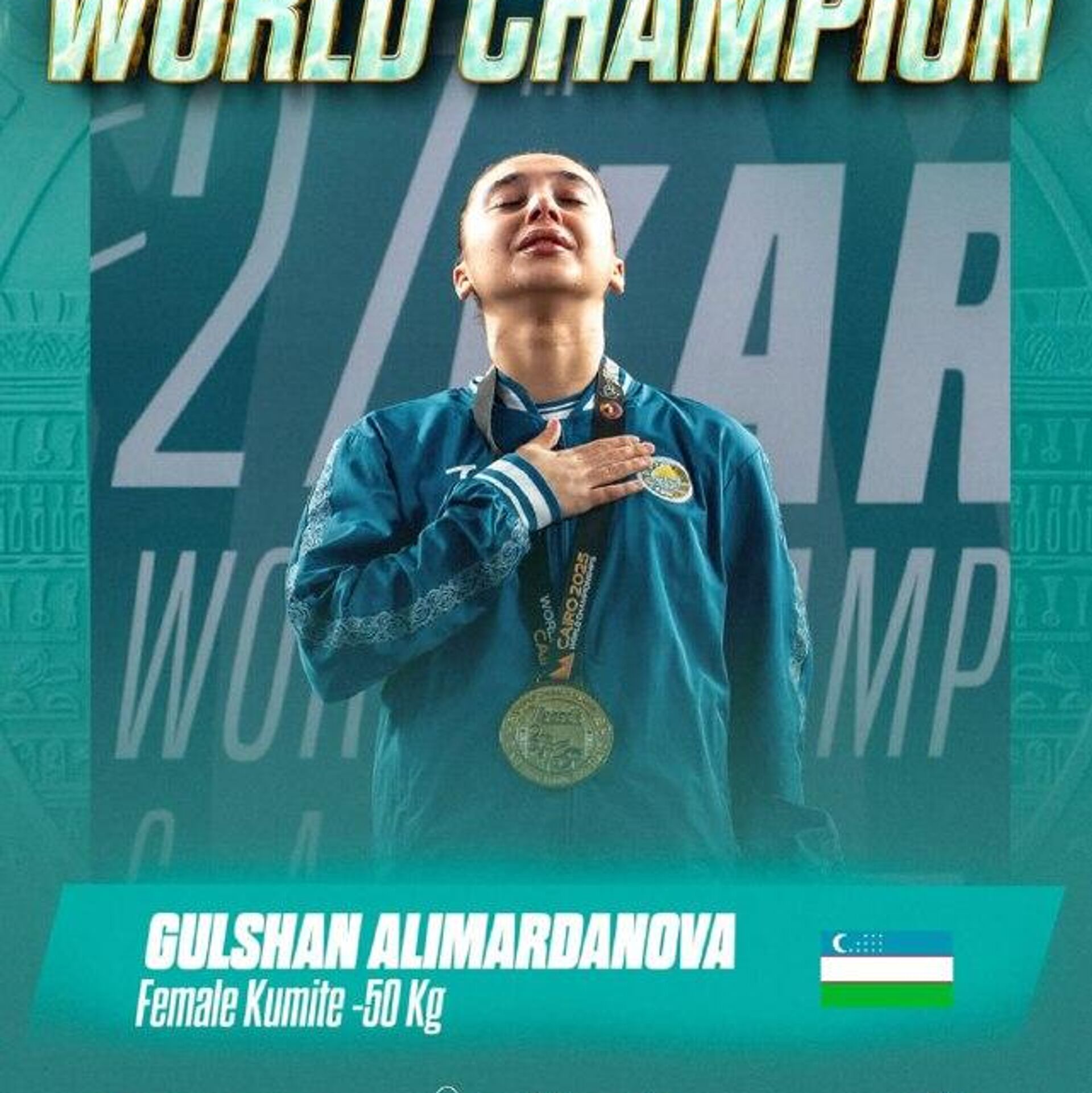 🟠Гульшан Алимарданова впервые в истории Узбекистана завоевала титул чемпионки мира по женскому кумитэ.