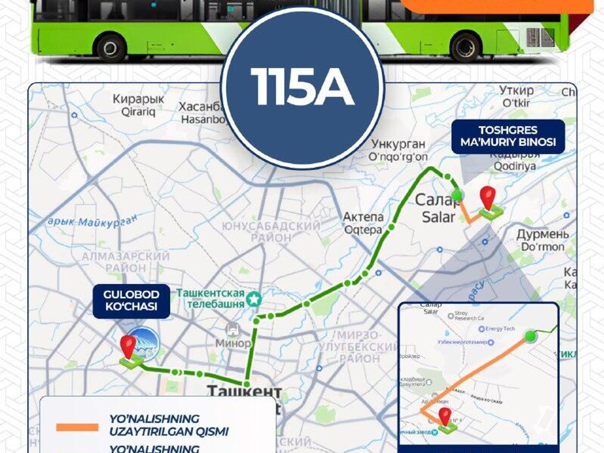 21:11 03.12.2025 (обновлено: 21:17 03.12.2025) Ташкентскому автобусу № 115 продлили маршрут.