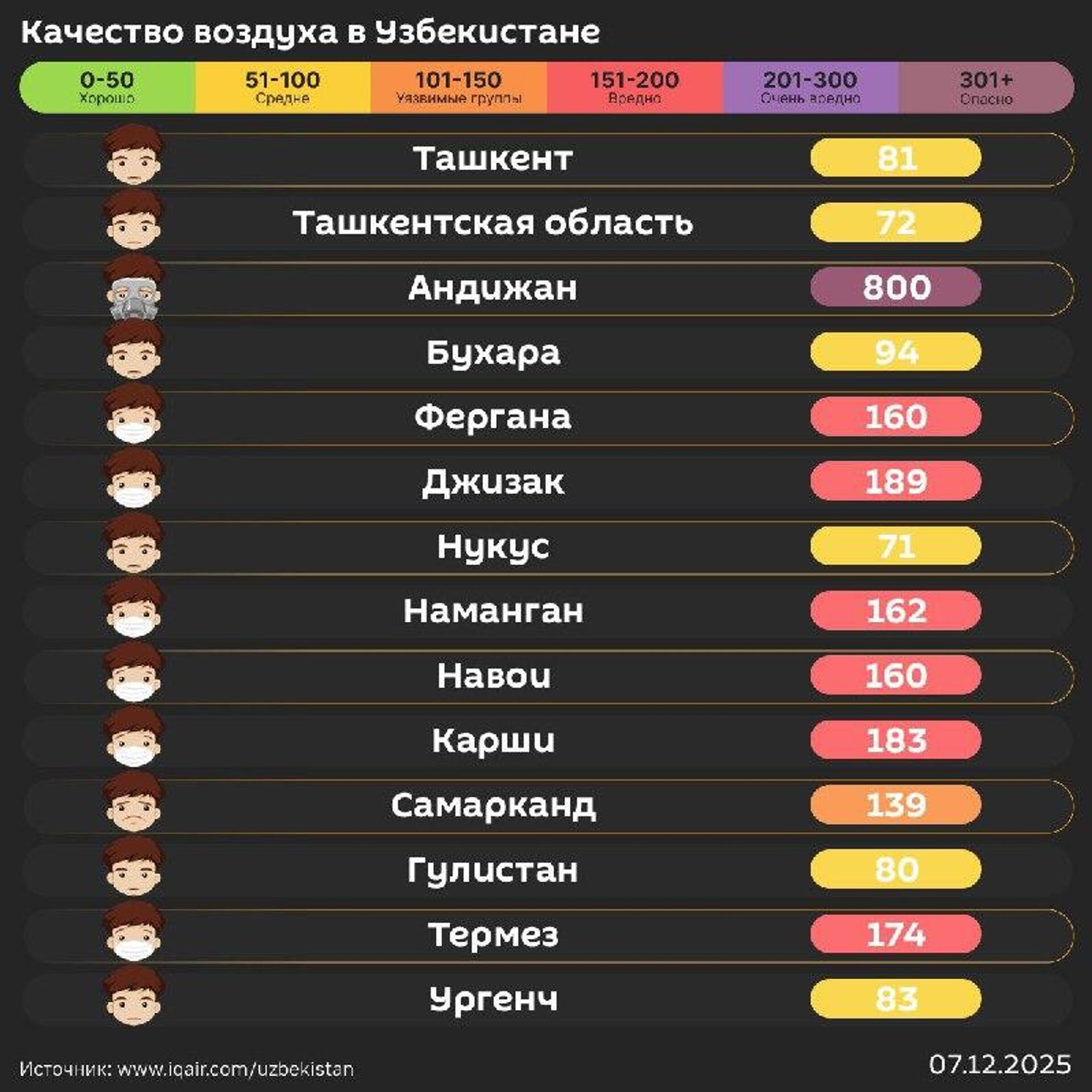 Качество воздуха в других городах республики - в инфографике @SputnikUzbekistan.