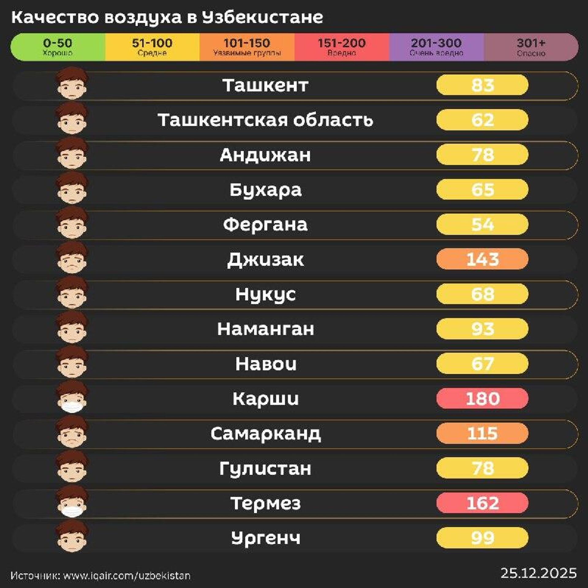 Качество воздуха в других городах республики - в инфографике @SputnikUzbekistan.