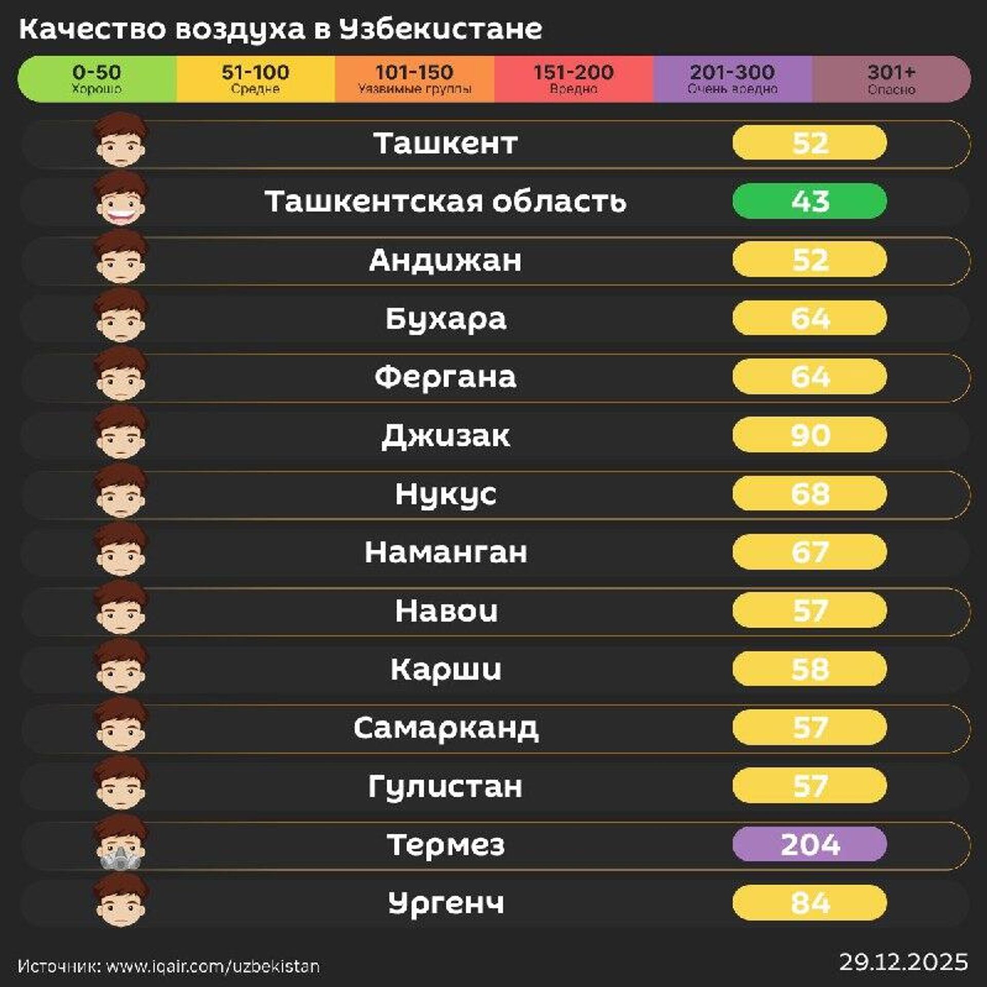 Качество воздуха в других городах республики - в инфографике @SputnikUzbekistan.