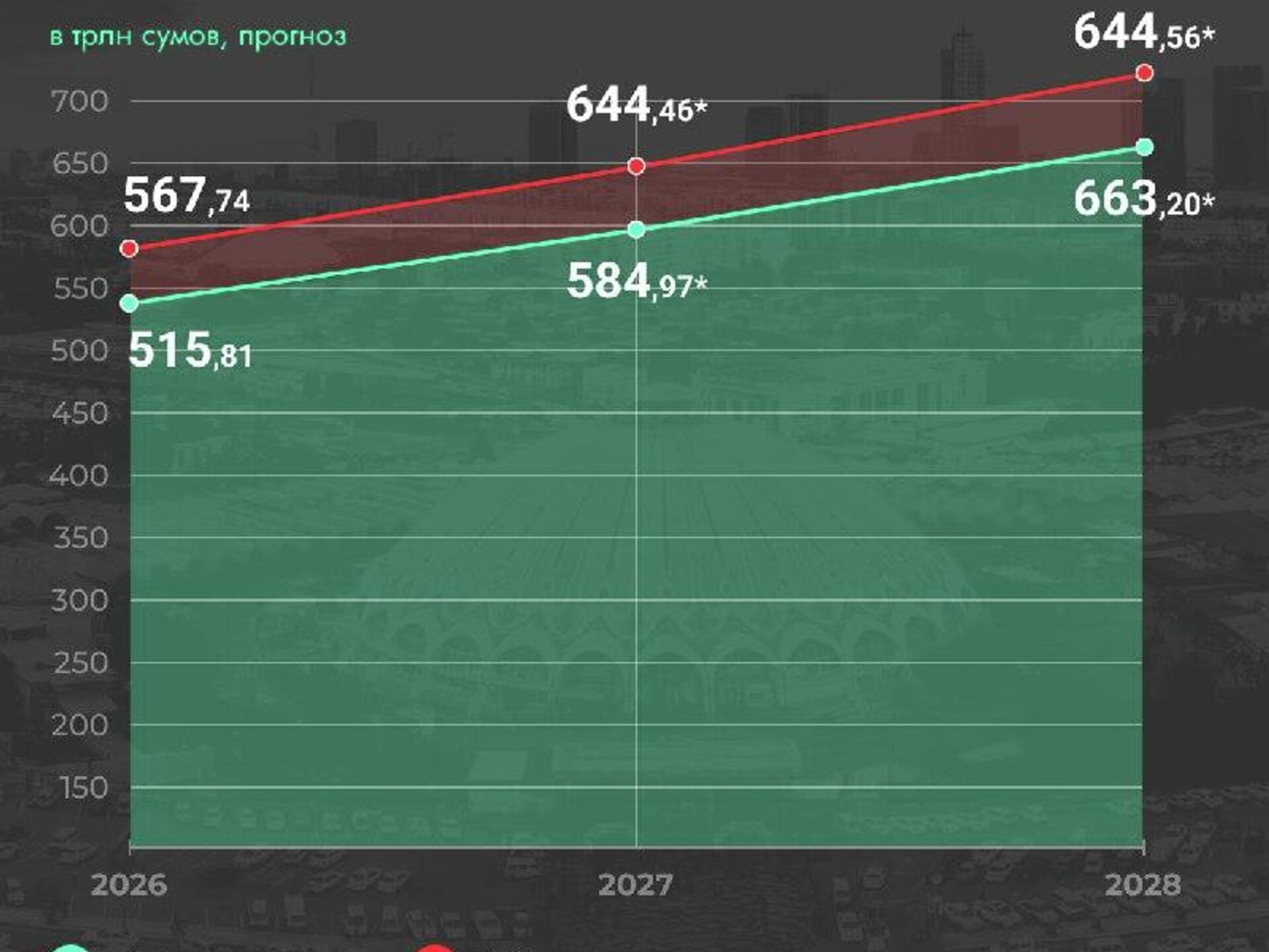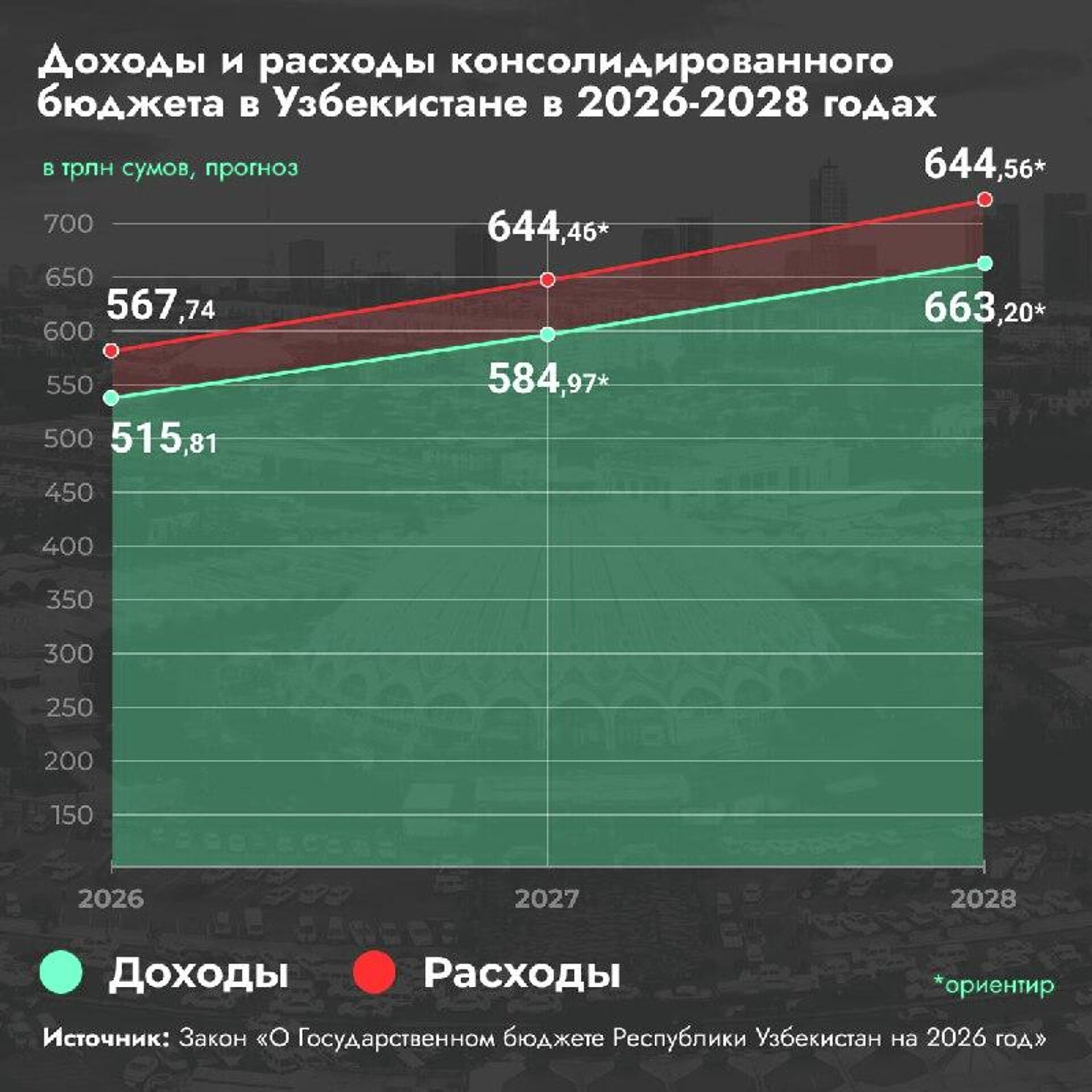 🟠 Расходы консолидированного бюджета в Узбекистане в 2028 году вырастут до 644,56 трлн сумов против 480,50 трлн в 2025-м.