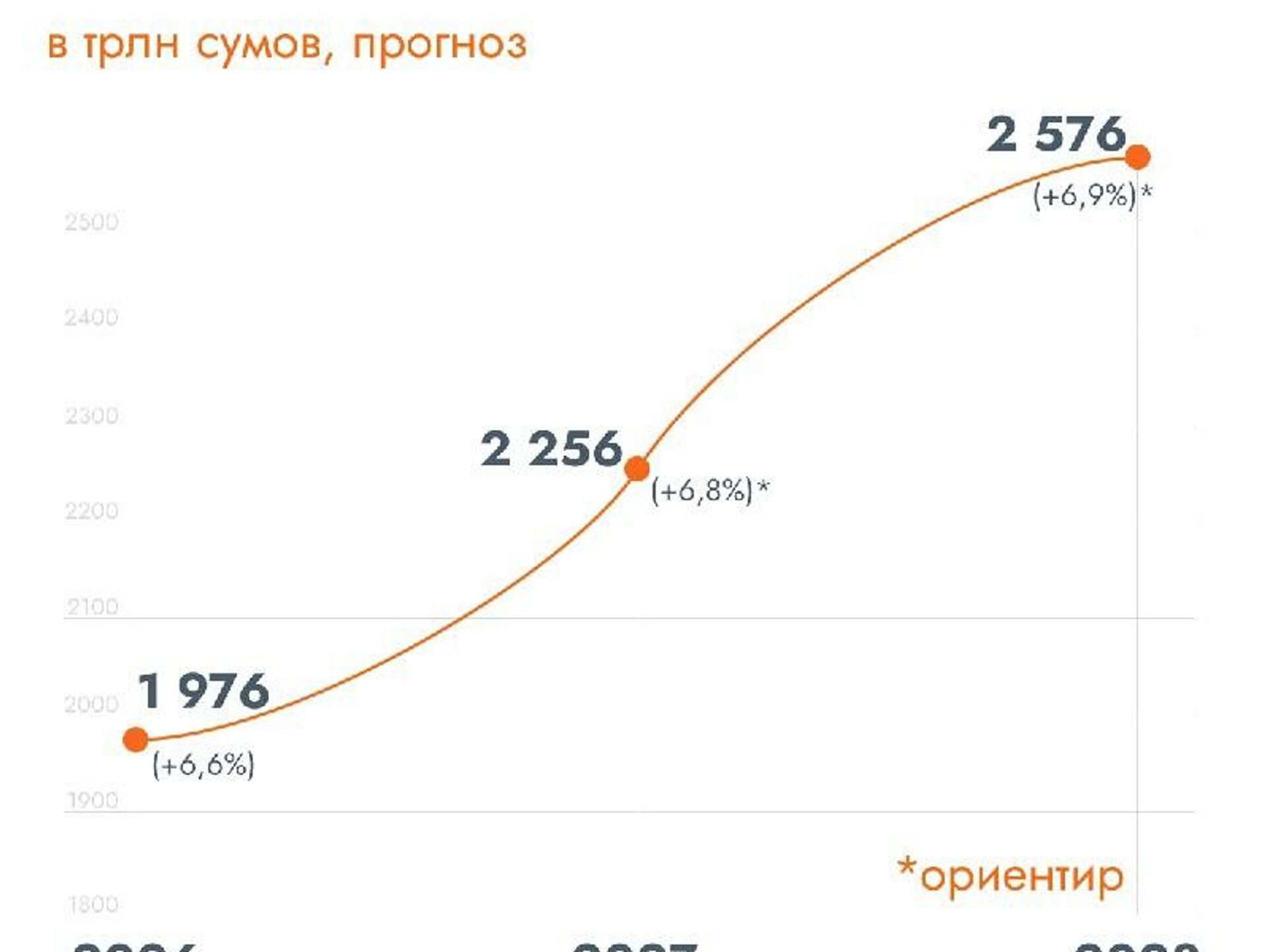 В номинальном выражении объем ВВП должен вырасти до 1 976 трлн сумов в 2026 году, а к 2028 - достичь 2 576 трлн сумов.