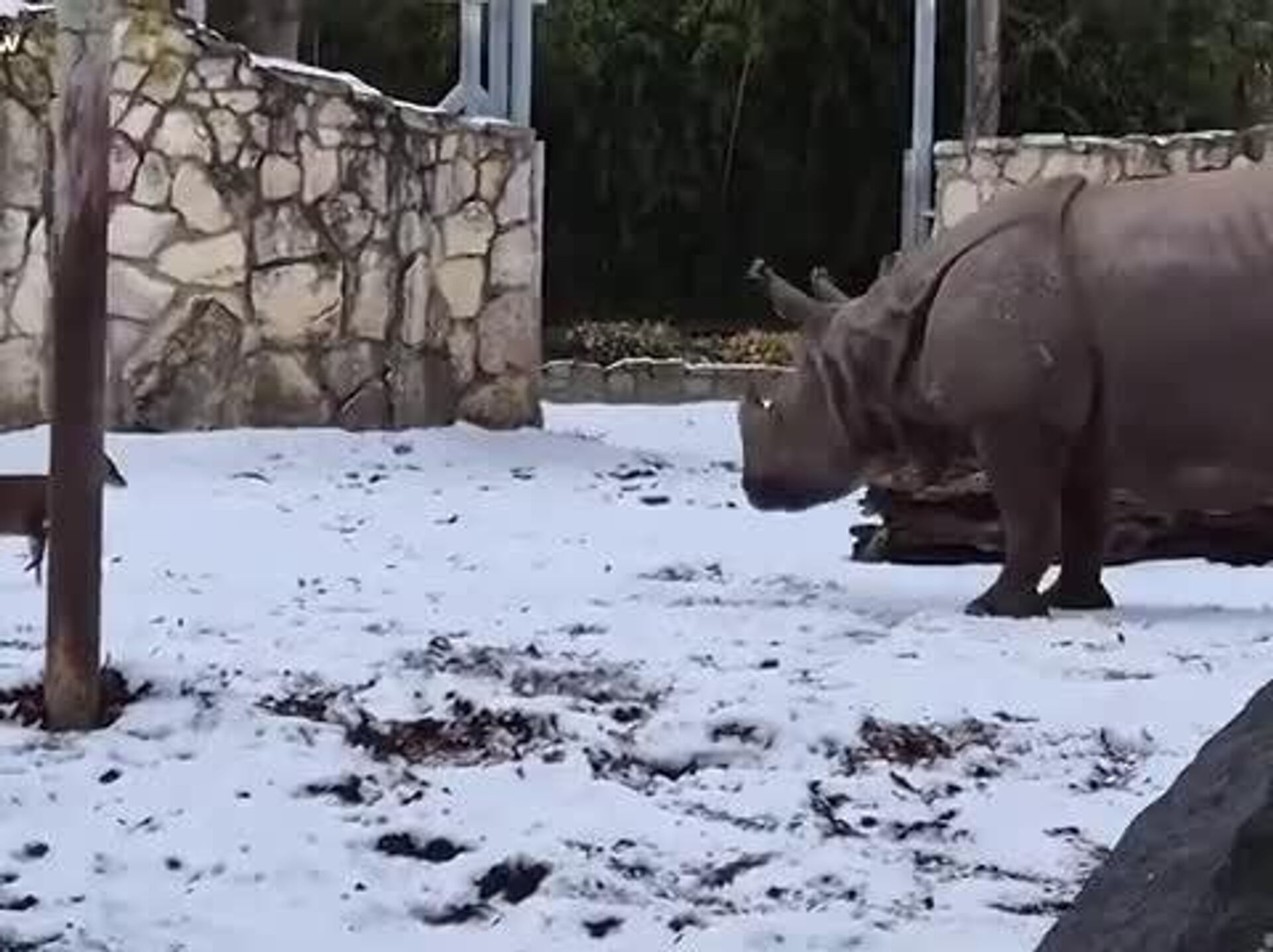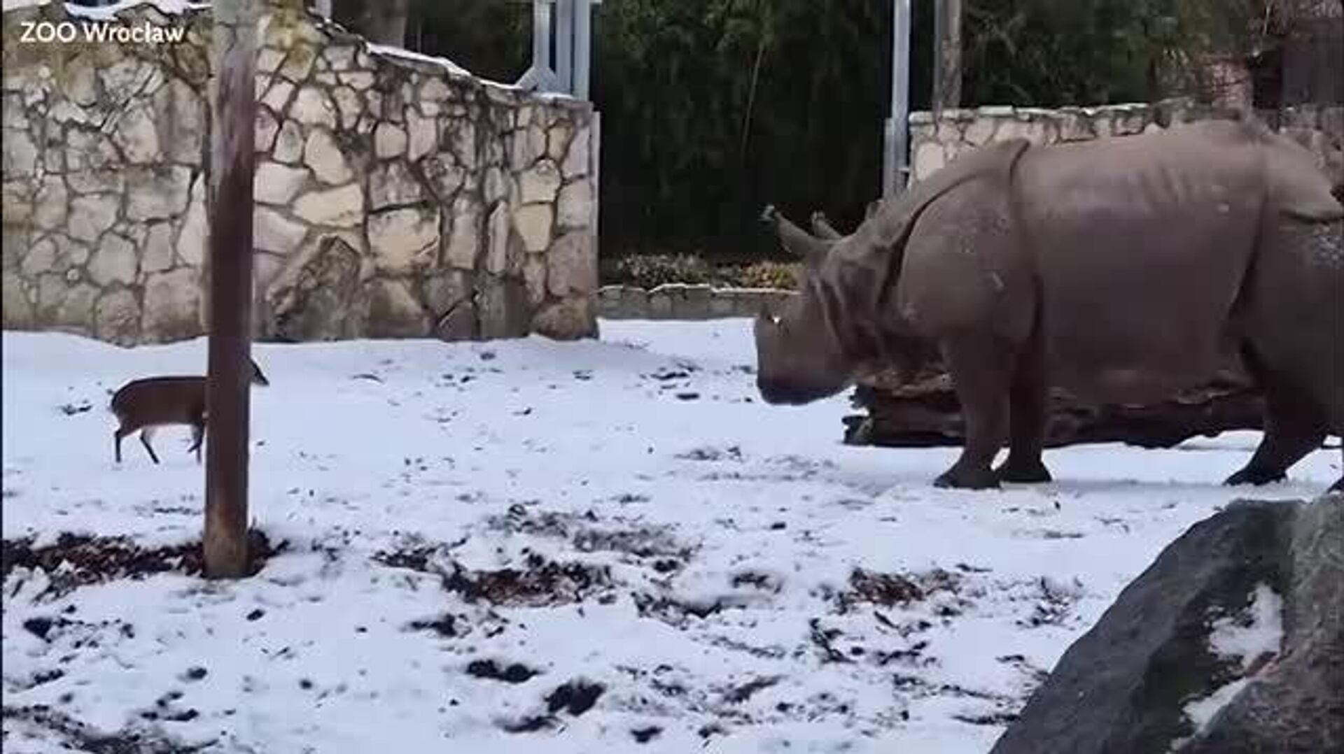 На видео 13-килограммовый мунтжак (китайский олень) самоотверженно ринулся на почти 2-тонного индийского носорога.