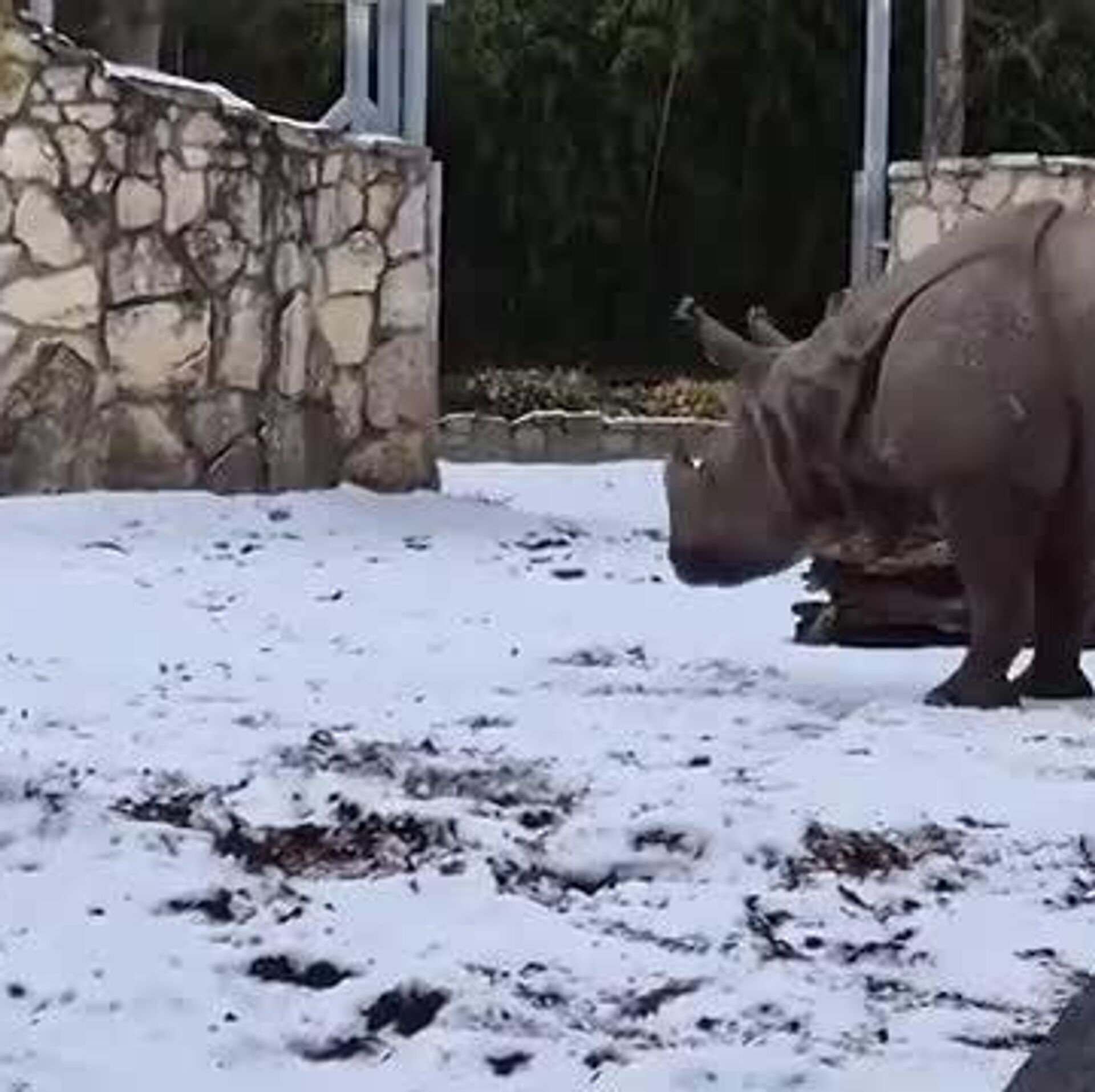 Носорог спокойно отнесся к "нападению" и не стал отвечать агрессией.