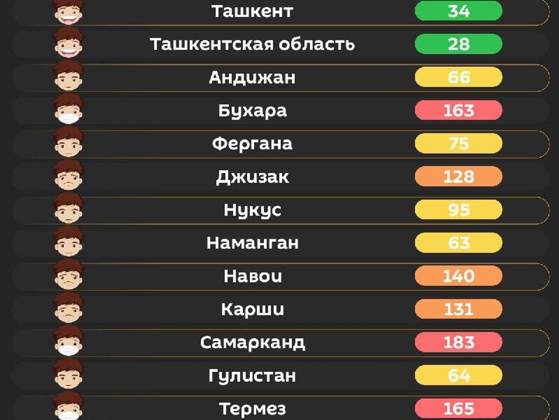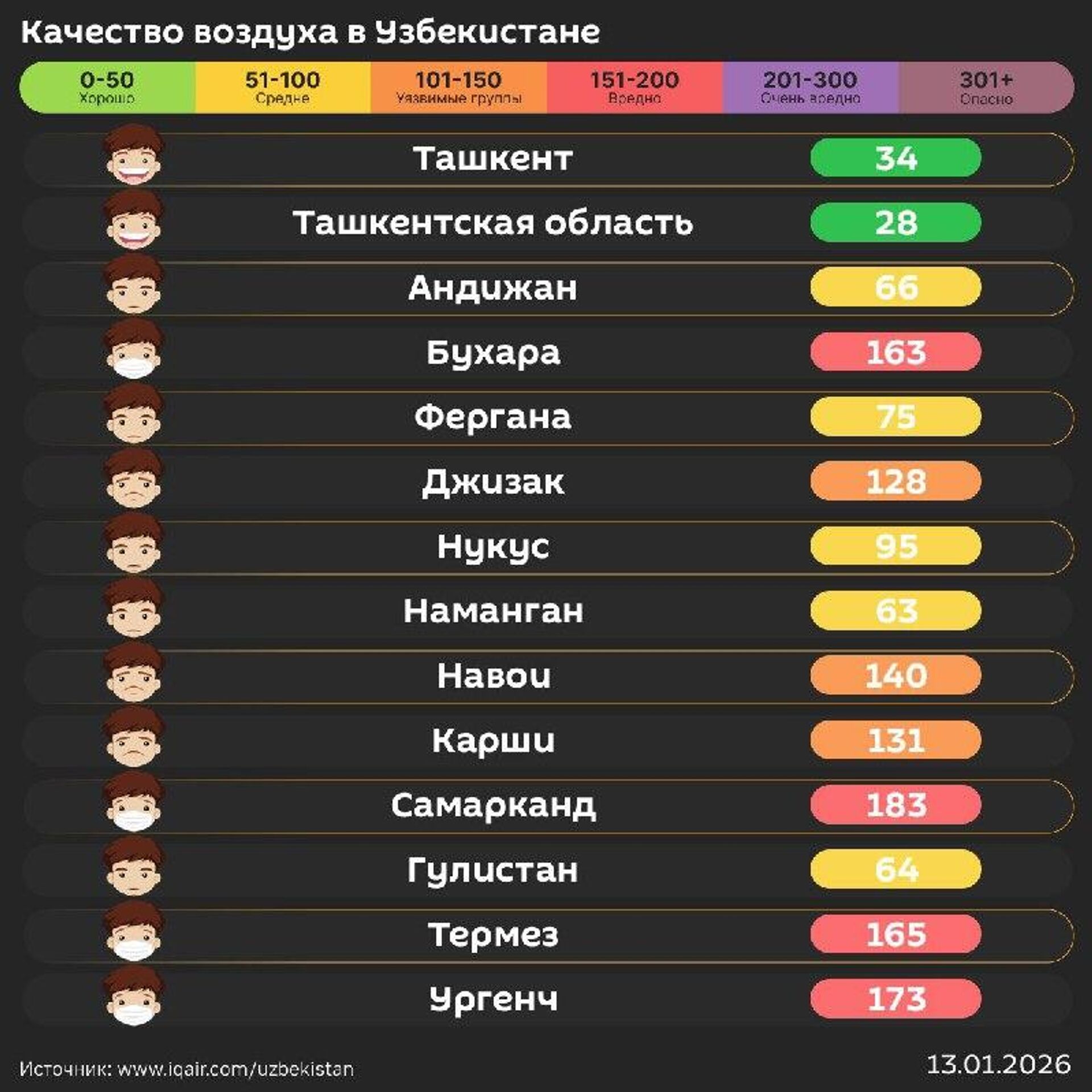 Качество воздуха в других городах республики - в инфографике @SputnikUzbekistan.