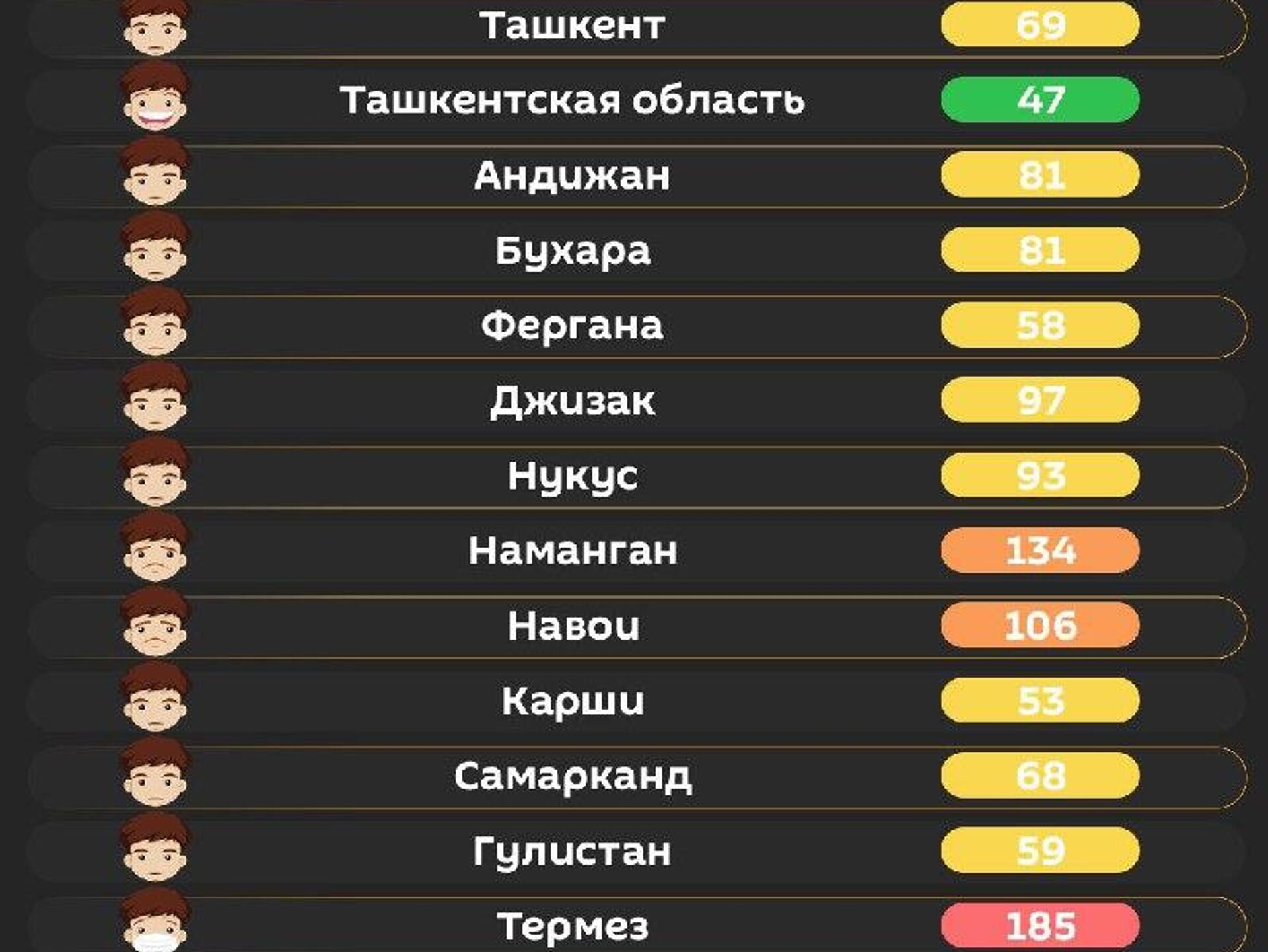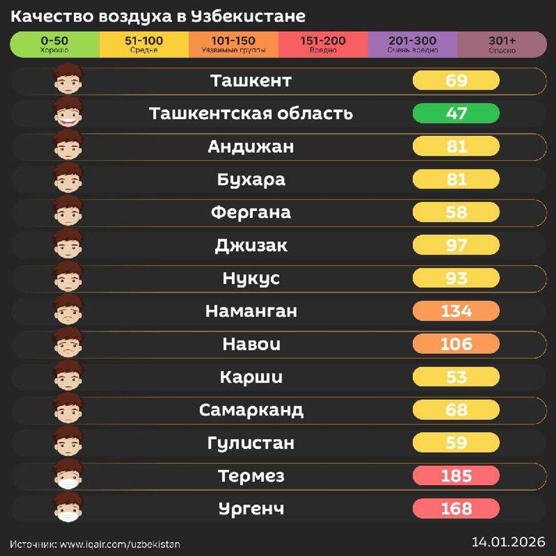 Качество воздуха в других городах республики - в инфографике @SputnikUzbekistan.