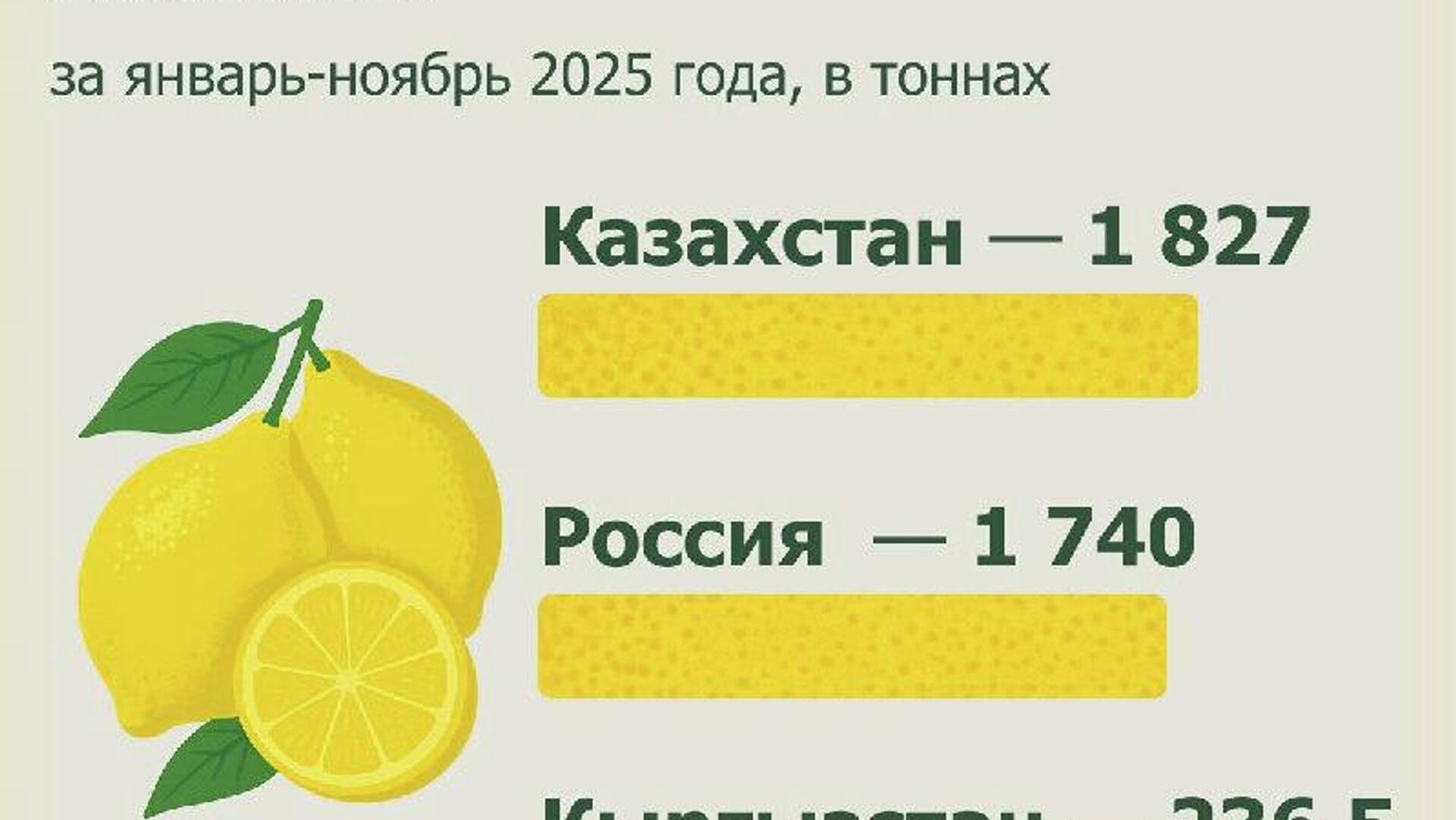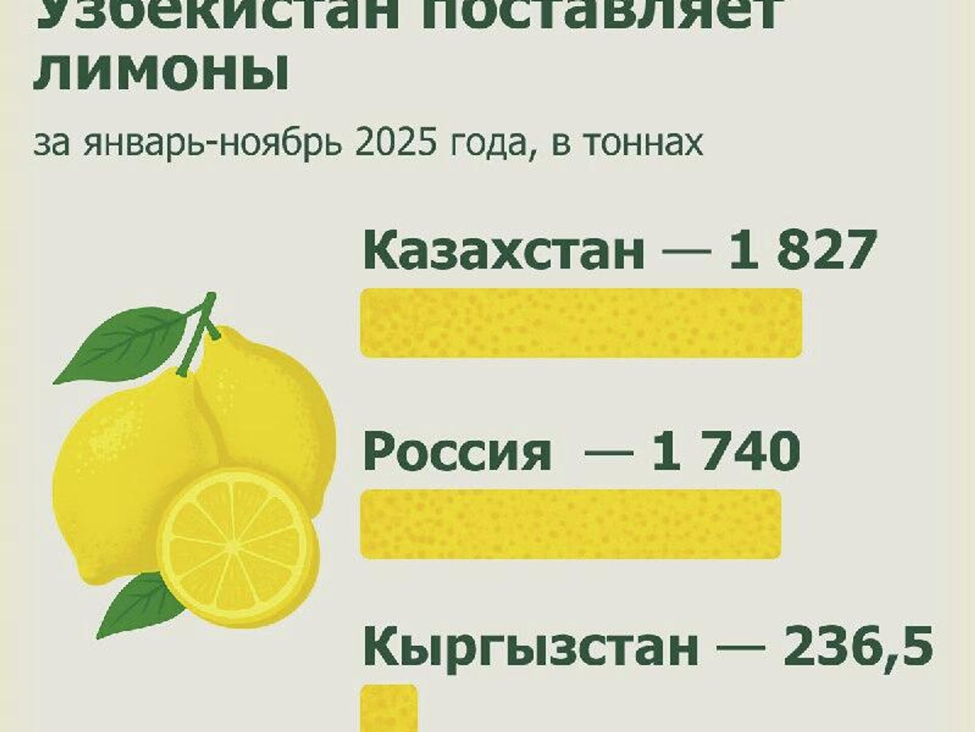 В январе–ноябре 2025 года Узбекистан экспортировал 3,8 тыс. тонн лимонов на сумму $5,4 млн.