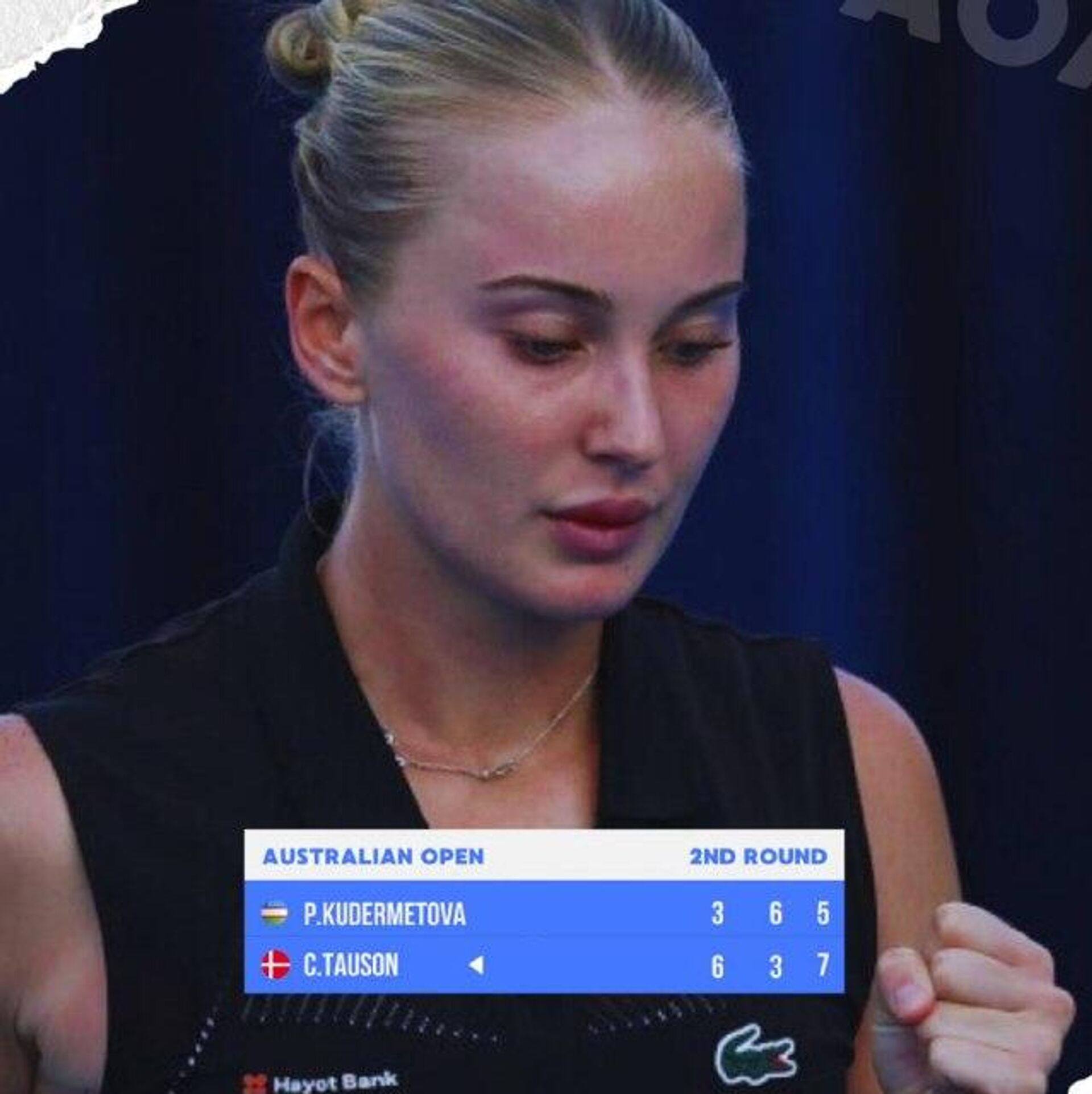 В матче второго круга Кудерметова в трех сетах уступила 14-й ракетке мира Кларе Таусон из Дании – 3:6, 6:3, 5:7.