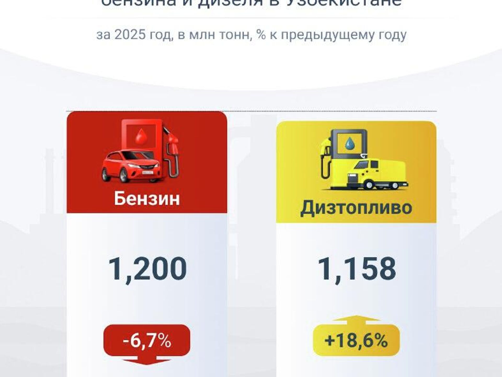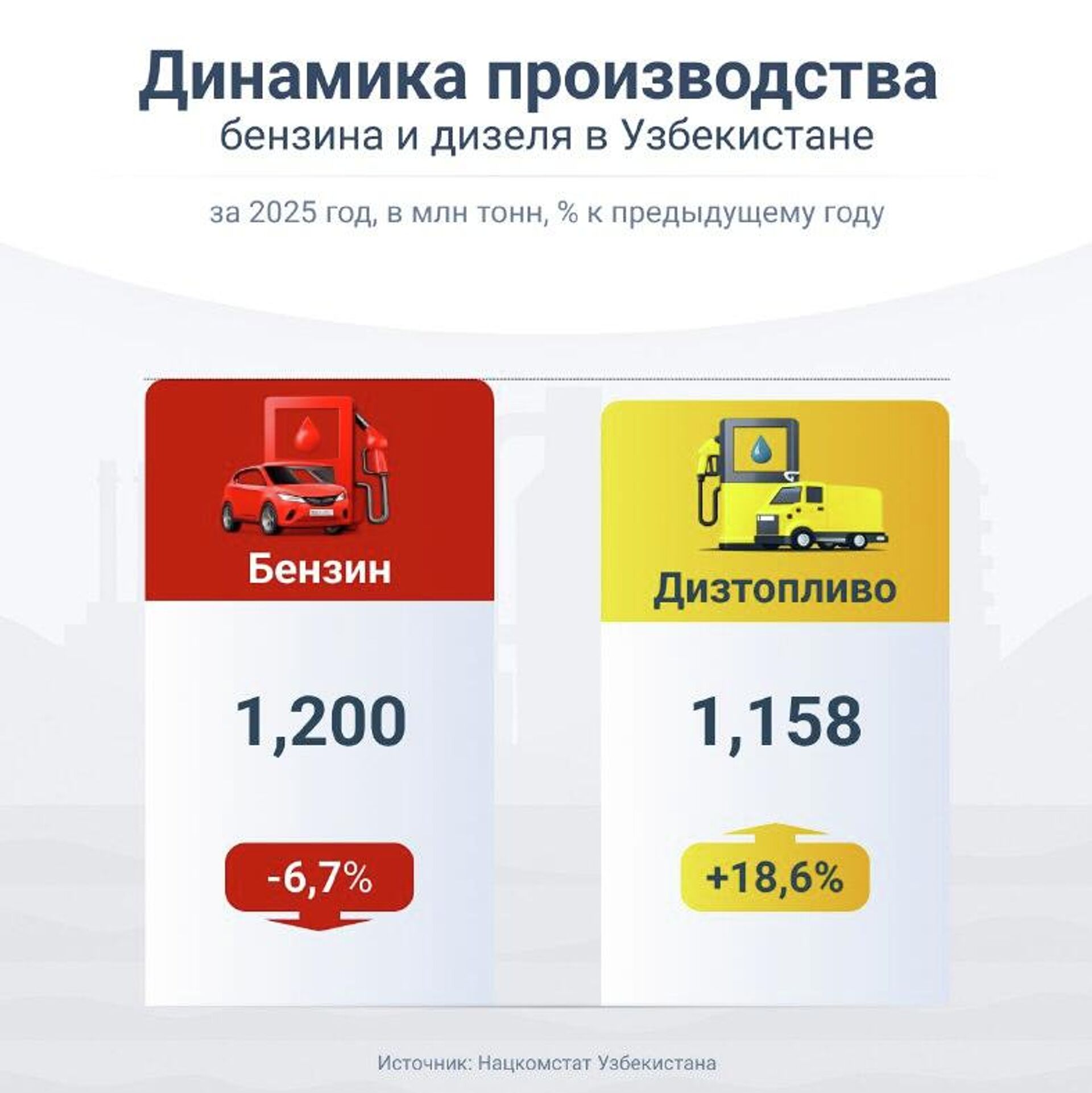 В Узбекистане в 2025 году производство автобензина по сравнению с 2024 годом сократилось на 6,7%.