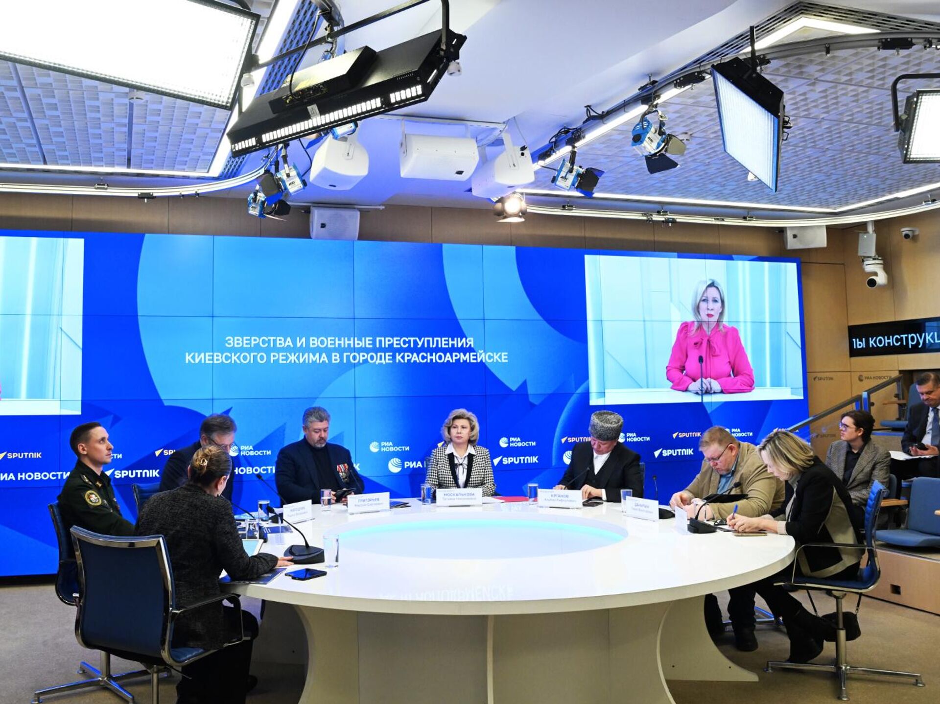 В международном мультимедийном пресс-центре "Россия сегодня" прошла пресс-конференция, в рамках которой представили доклад Международного общественного трибунала по преступлениям украинских неонацистов "Зверства и военные преступления киевского режима в городе Красноармейске (Покровске)".