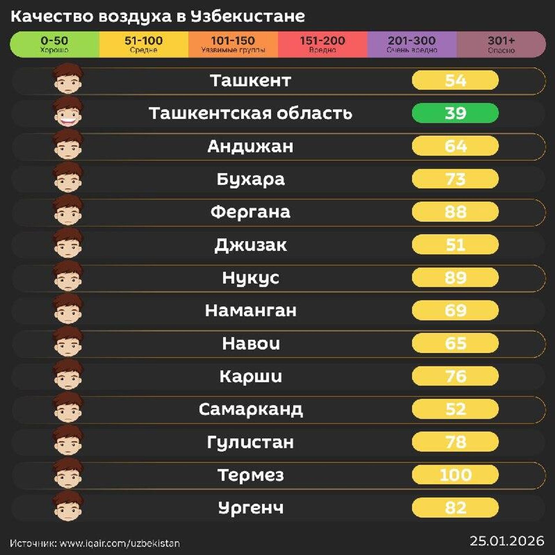 Качество воздуха в других городах республики - в инфографике @SputnikUzbekistan.
