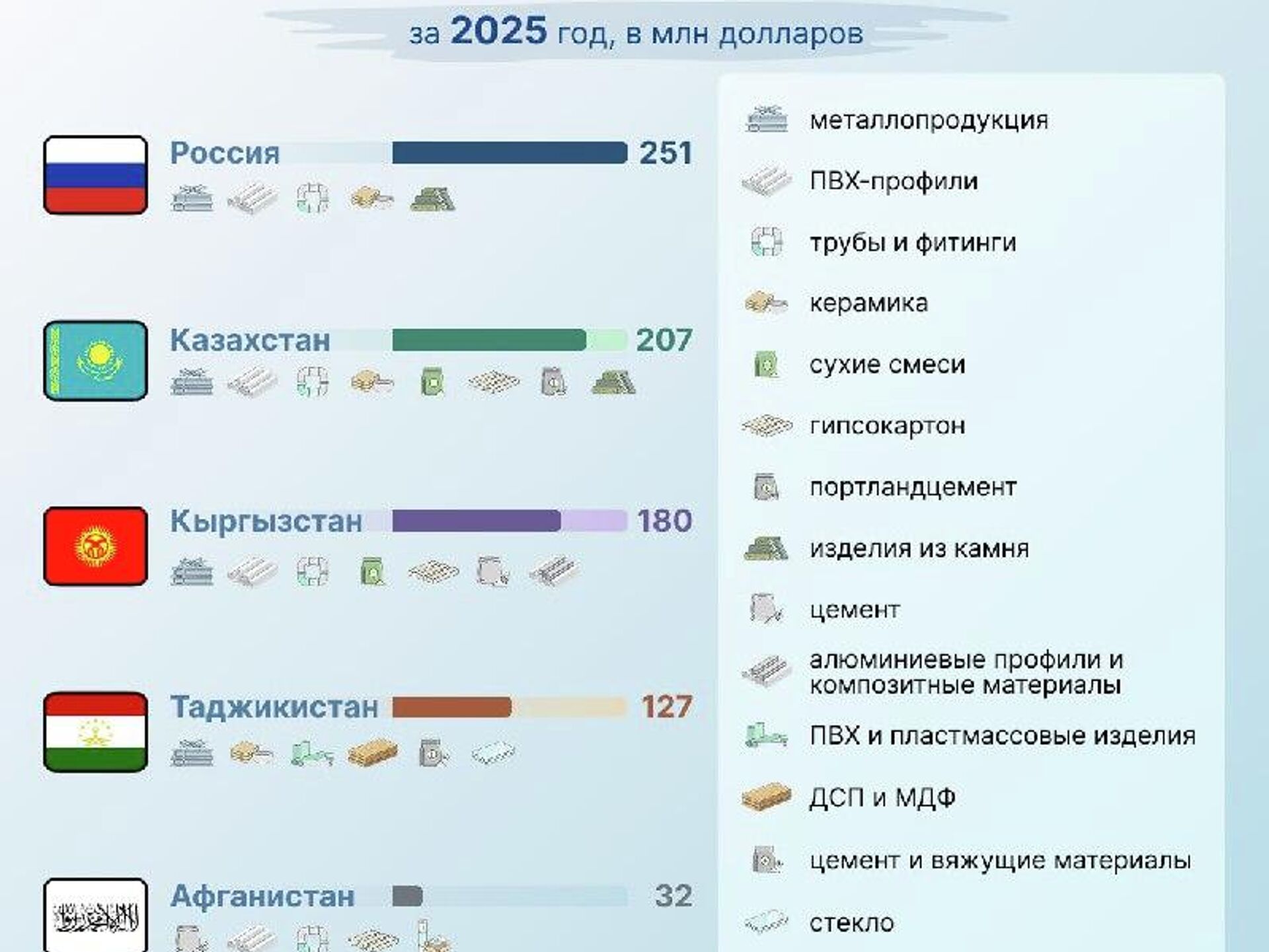 Всего в 2025 году республика экспортировала стройматериалы на $1,2 млрд, что на 44,5% больше, чем в 2024-м.