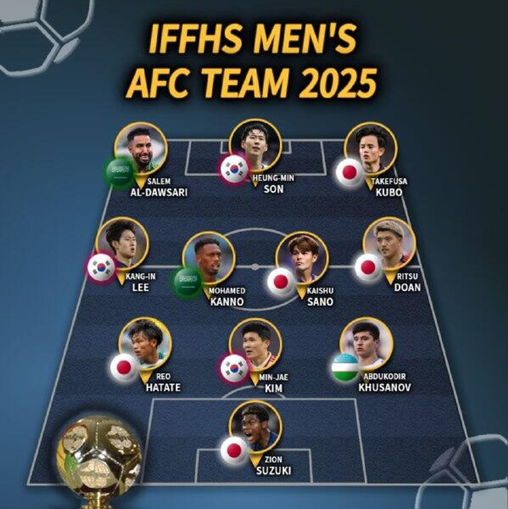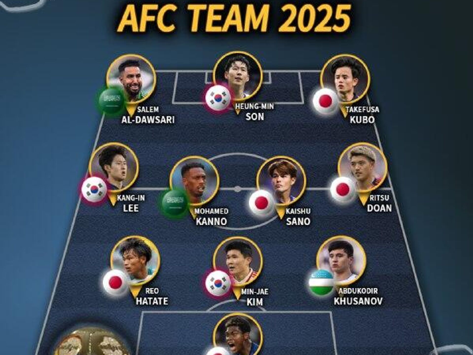 Футболист Абдукодир Хусанов вошел в символическую сборную Азии по итогам 2025 года.