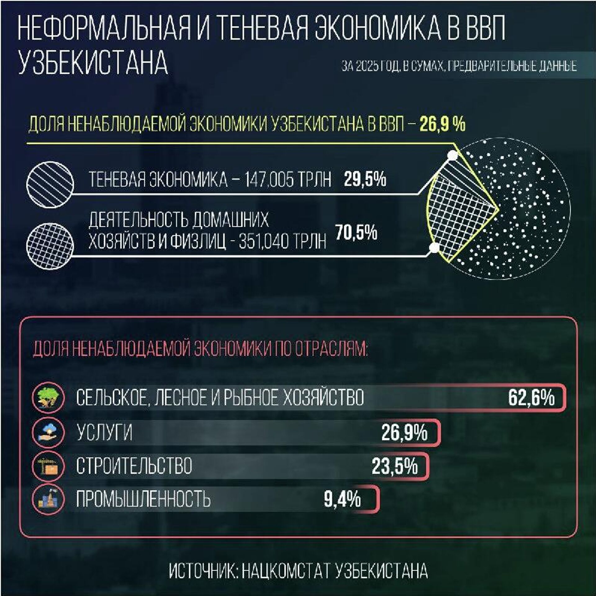 🟠Ненаблюдаемая экономика в Узбекистане заняла почти 27% в ВВП в 2025 году.