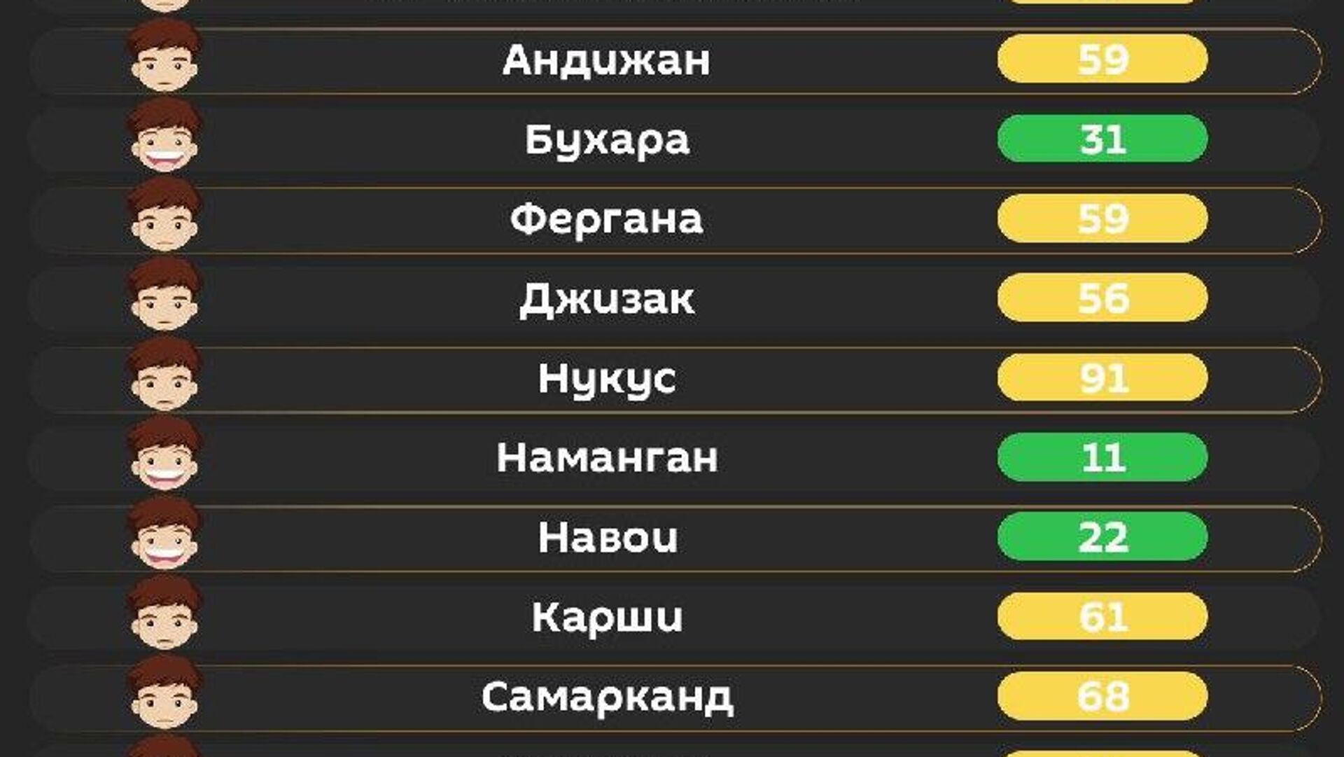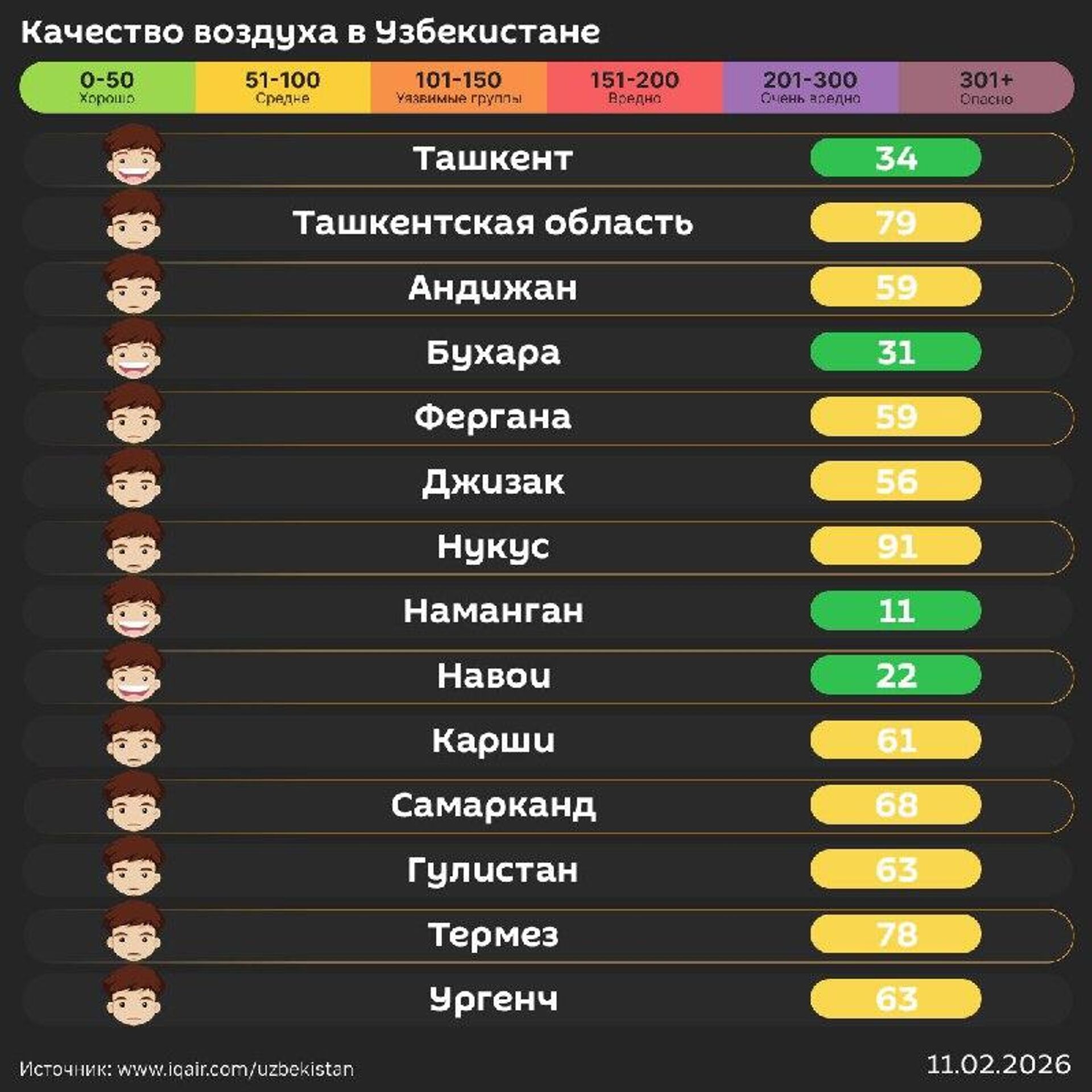 Качество воздуха в других городах республики - в инфографике @SputnikUzbekistan.