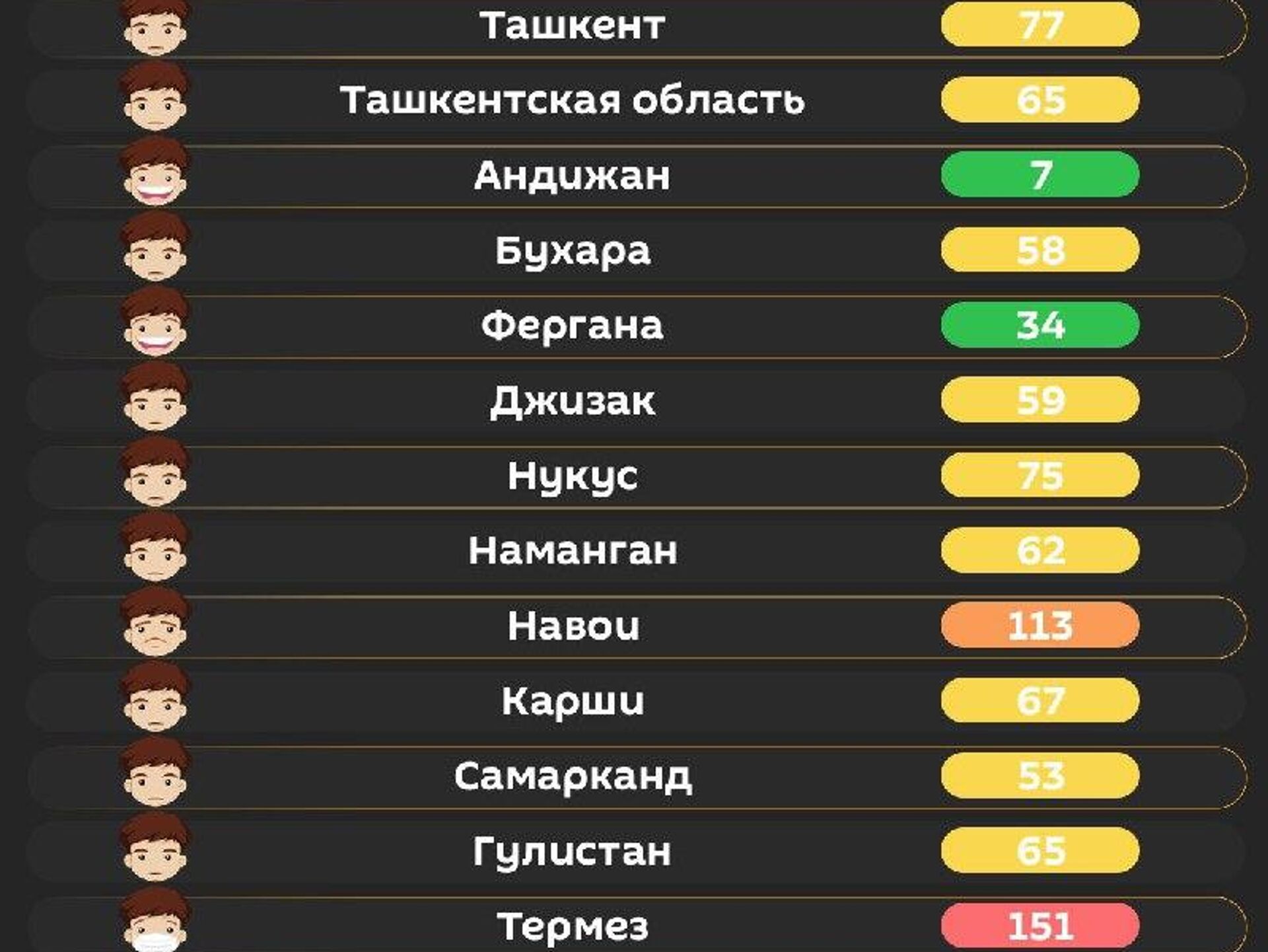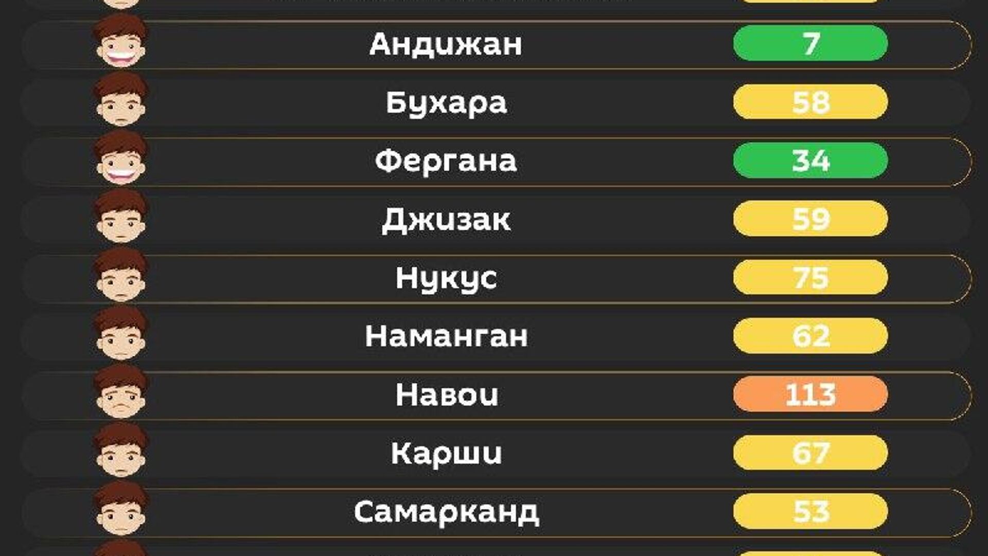 Качество воздуха в других городах республики - в инфографике @SputnikUzbekistan.