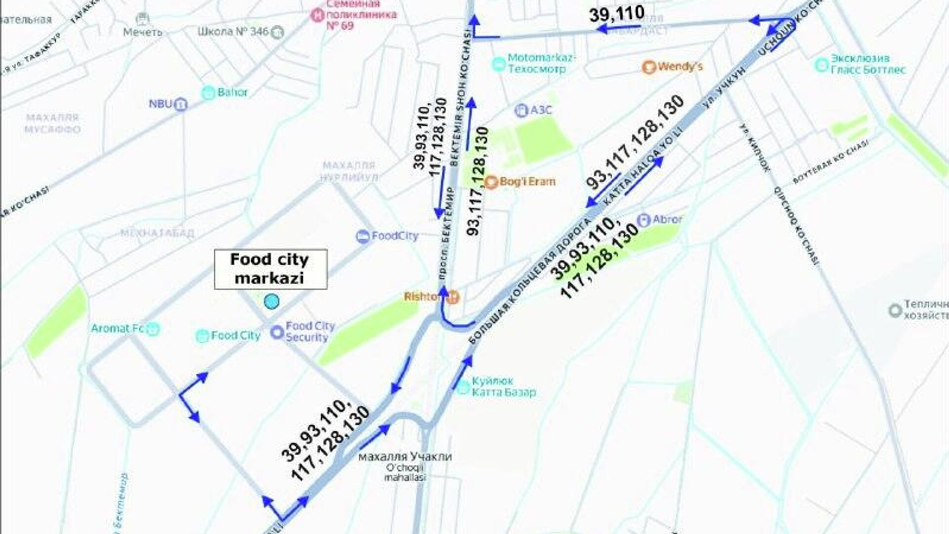 В частности, автобусы № 93, 117, 128, 130 будут разворачиваться на перекрестке Катта халка йули и ул. Фуркат.