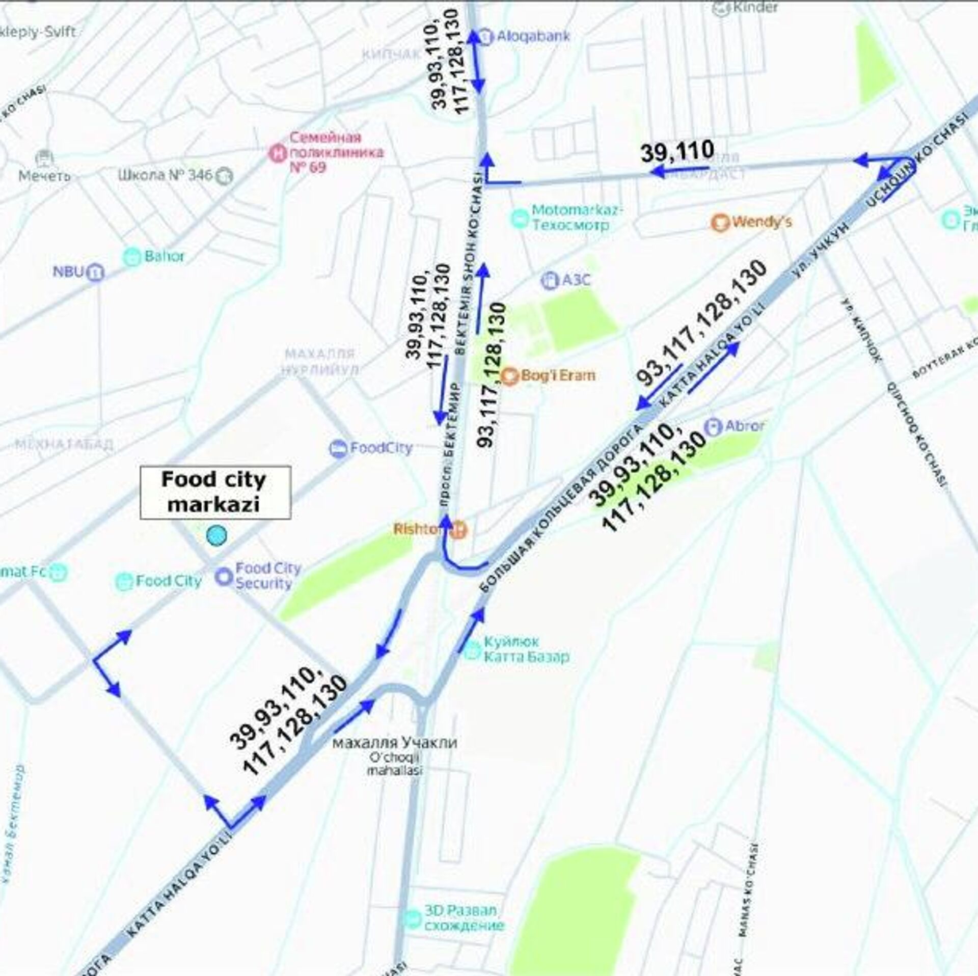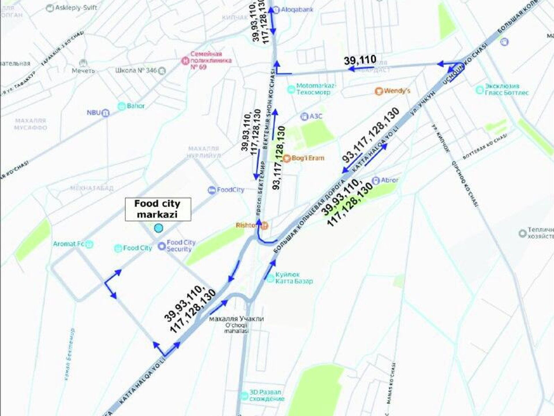 Автобусы № 39, 110 временно изменят движение на одностороннее через улицы Катта халка йули, Фуркат и Бектемир йули.