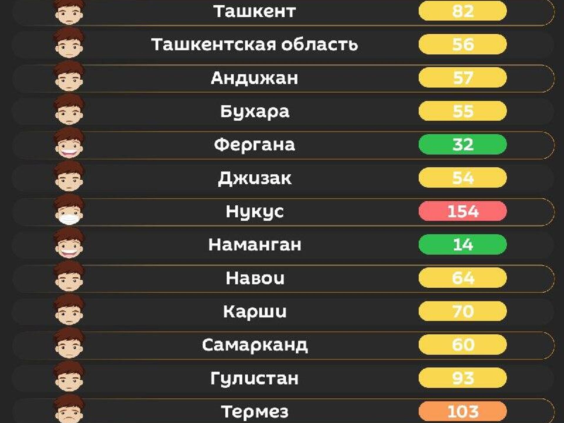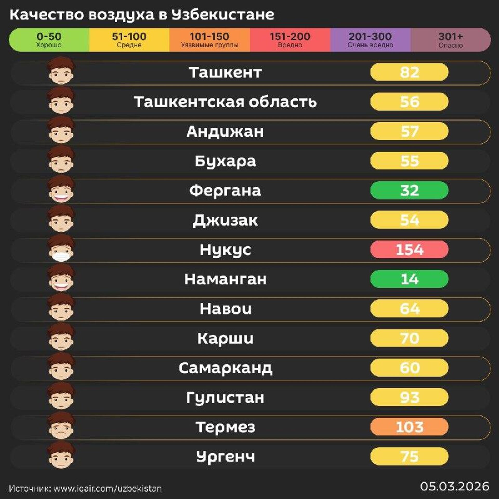 Качество воздуха в других регионах – в инфографике @SputnikUzbekistan.