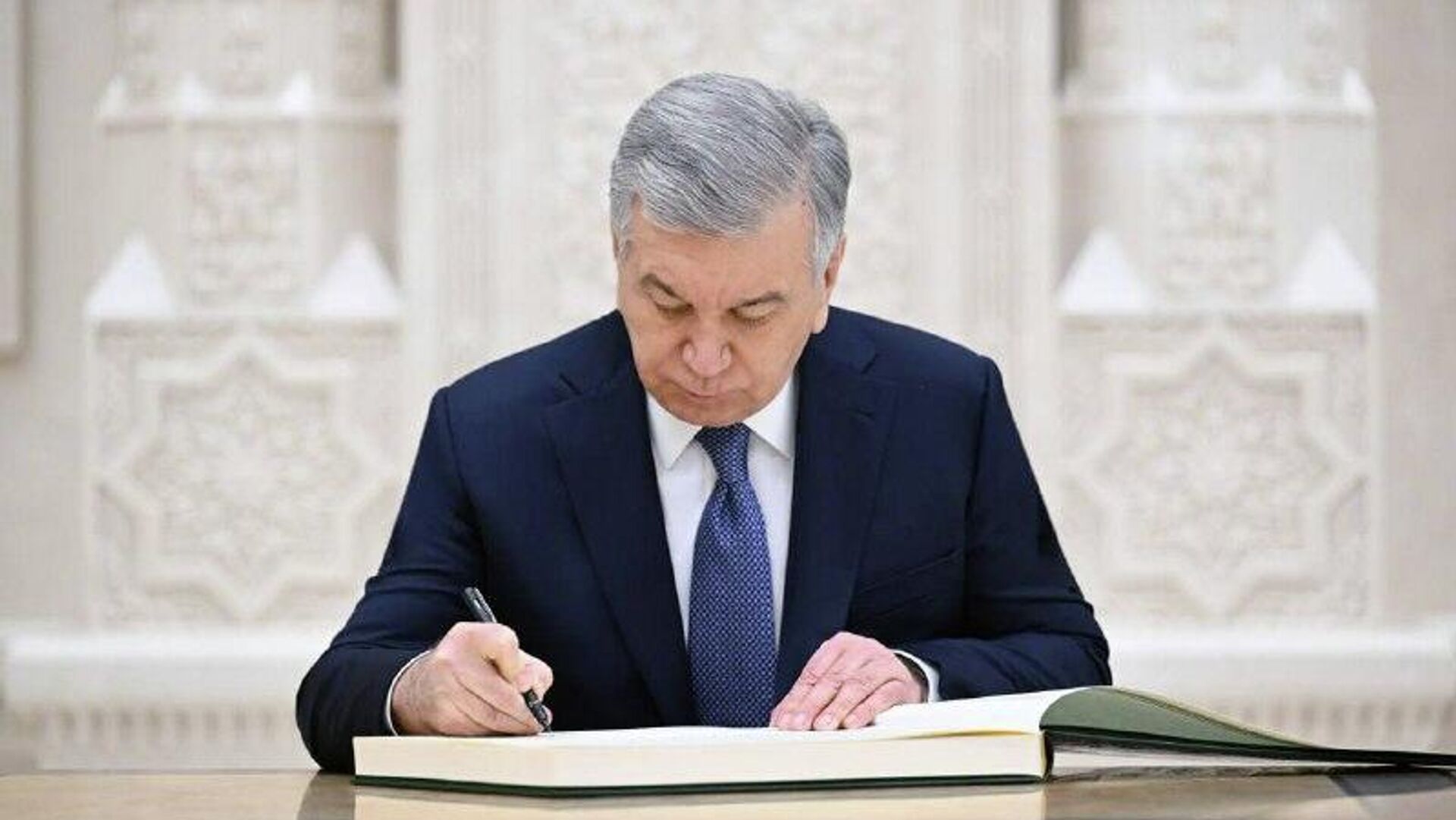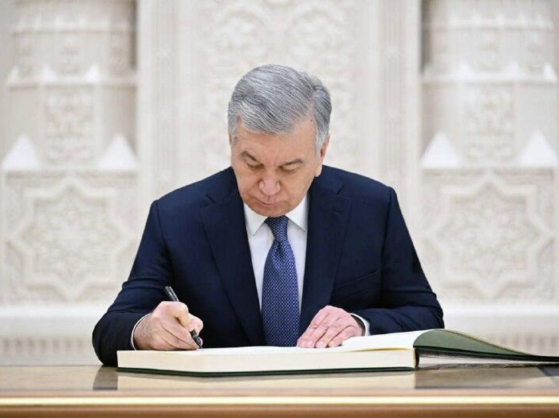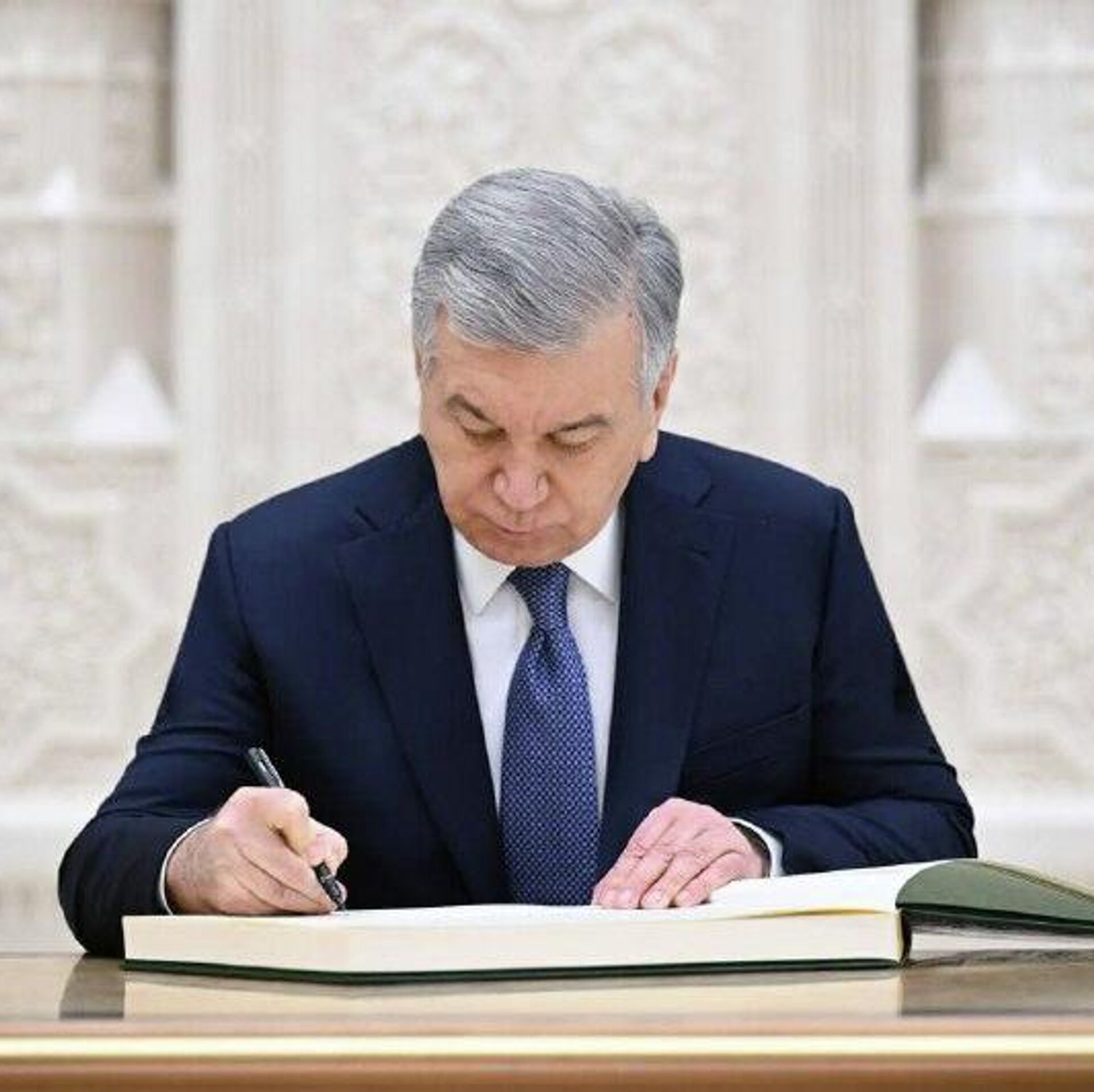 В завершение визита президент Узбекистана расписался в Книге почетных гостей Центра исламской цивилизации.