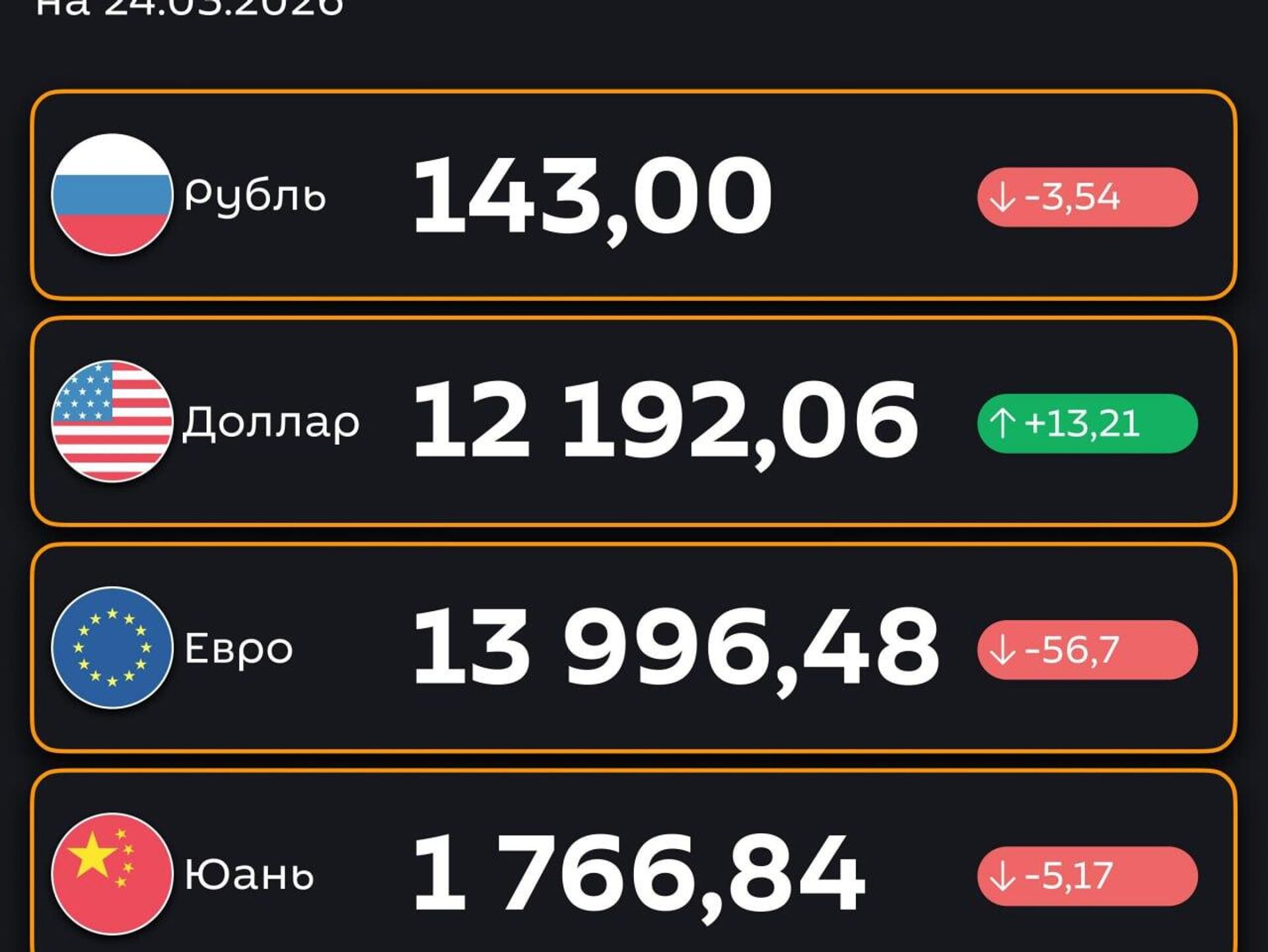 16:04 19.03.2026 (обновлено: 16:17 19.03.2026) Доллар подорожал, рубль подешевел — ЦБ РУз установил новые курсы валют по отношению к суму с 24 марта