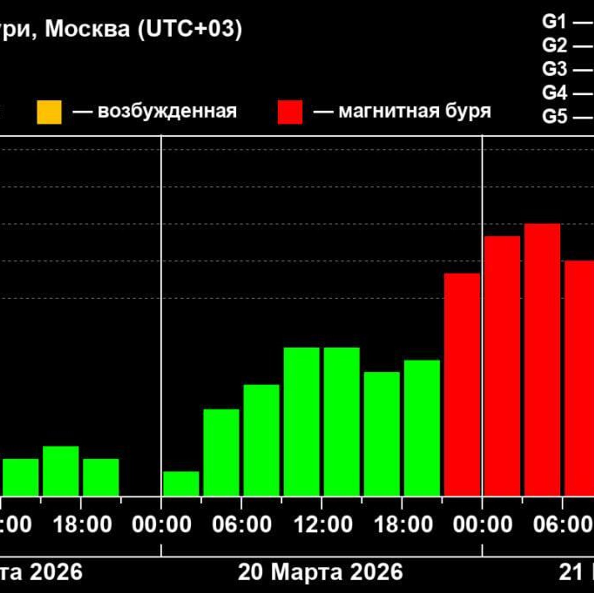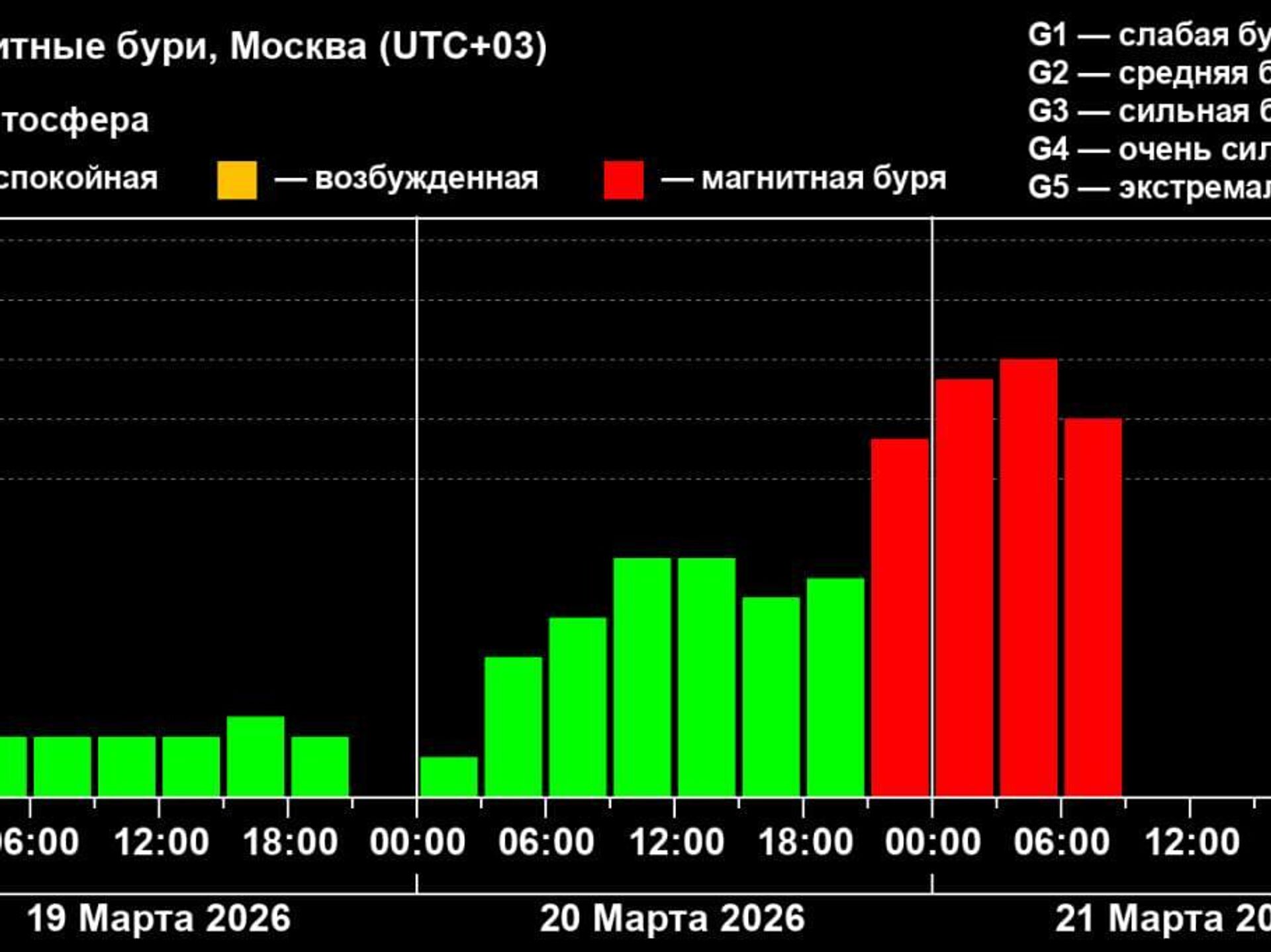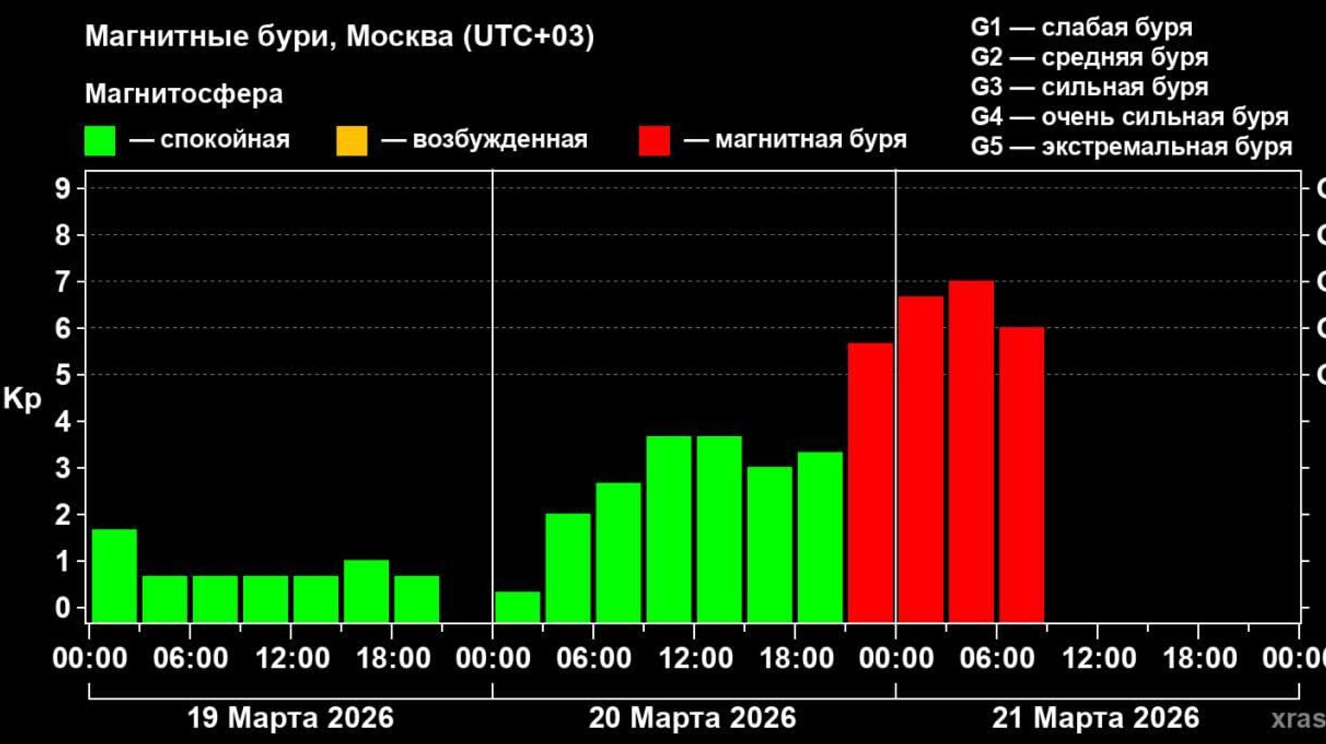 15:25 21.03.2026 (обновлено: 15:32 21.03.2026) Магнитная буря, продолжающаяся около 12 часов, уже стала самой мощной за два месяца.