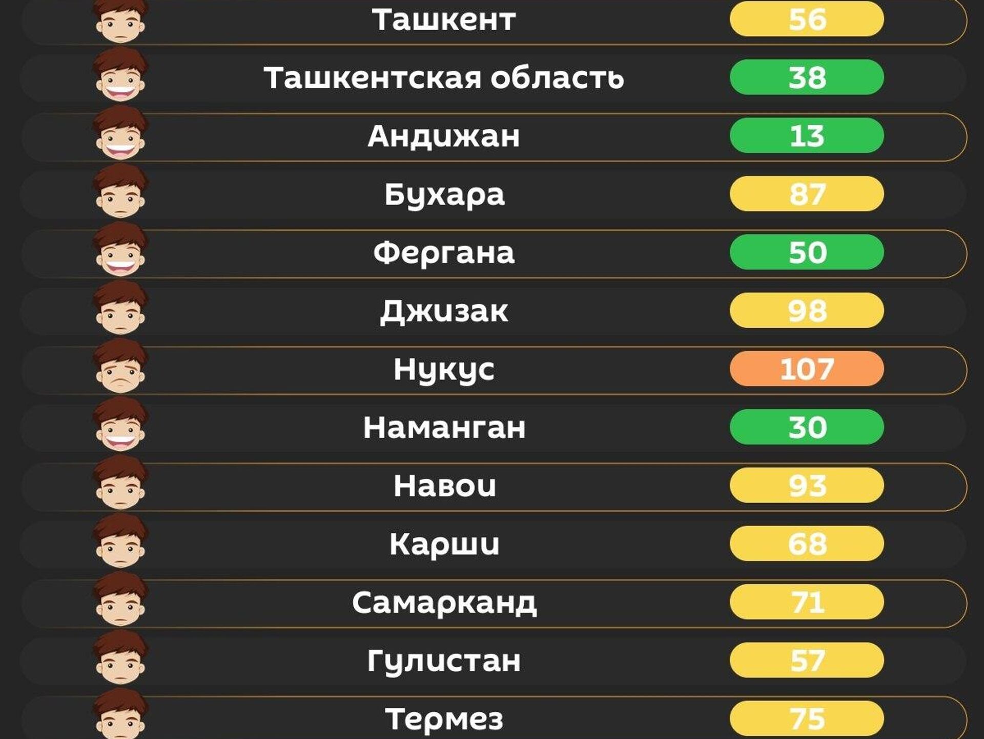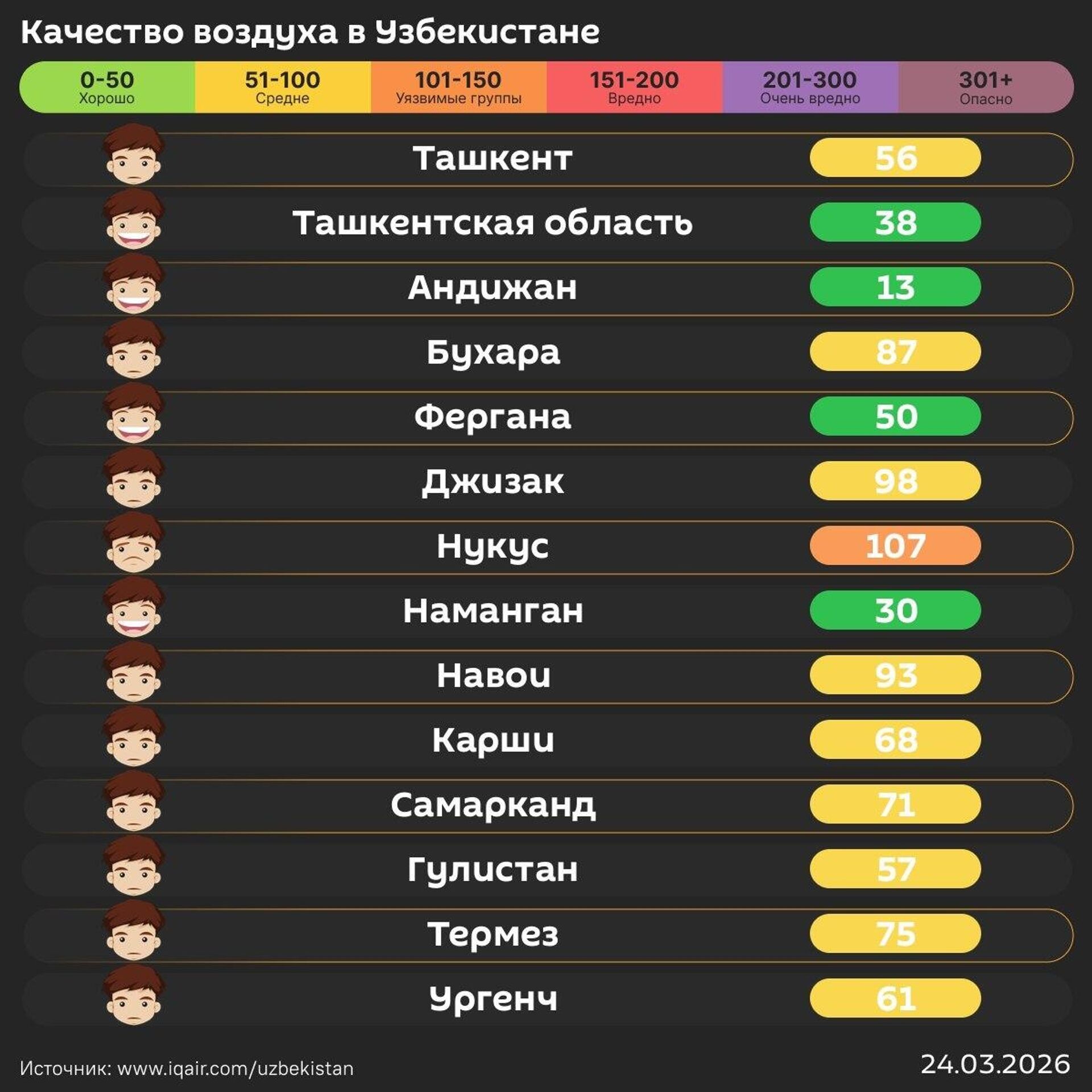 Качество воздуха в других городах республики - в инфографике @SputnikUzbekistan.