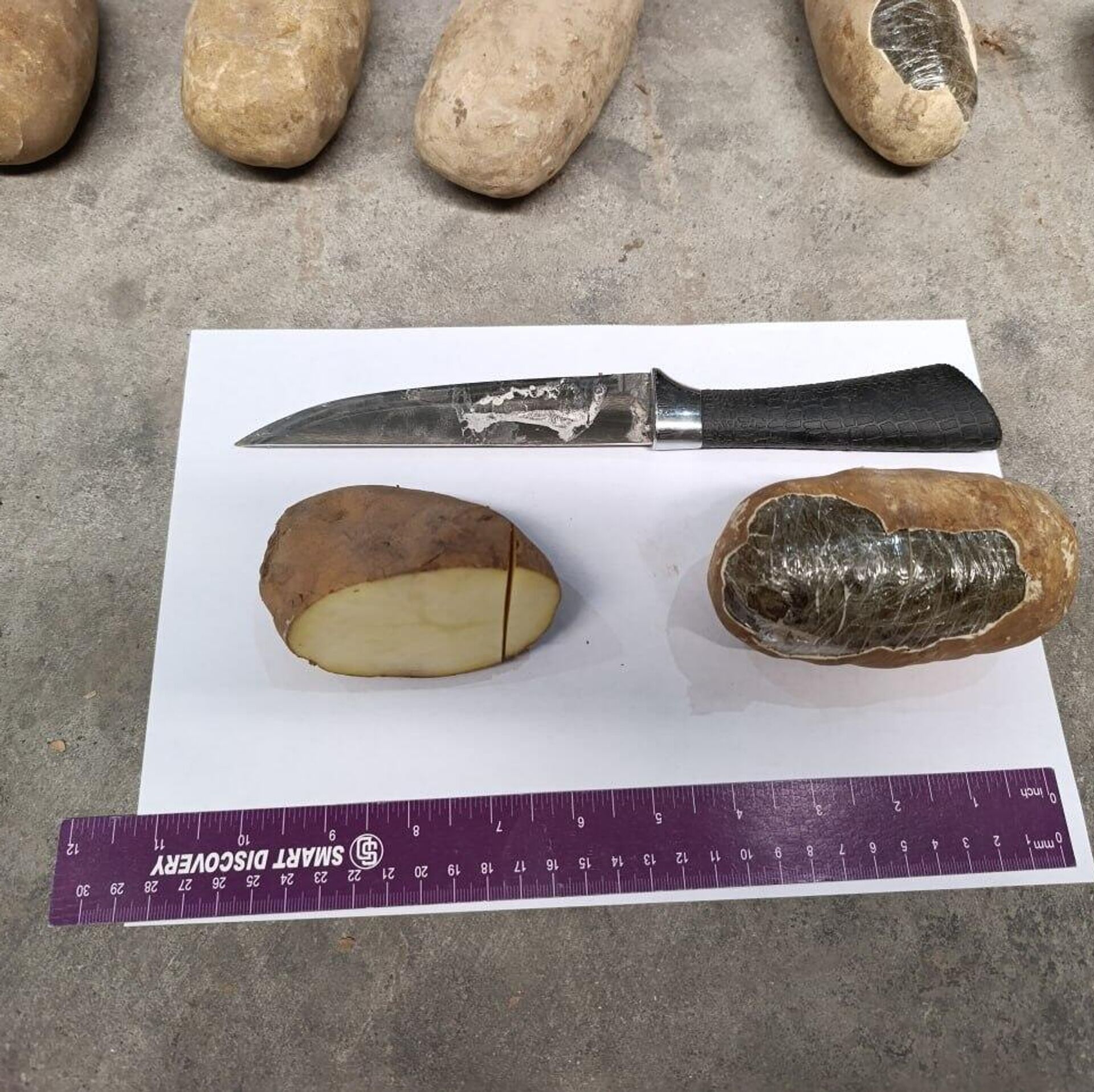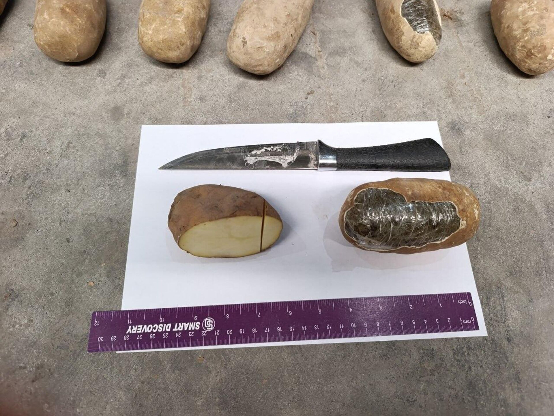 Проверку в международном пункте пропуска "Термез-автомобильный" провели сотрудники пограничных войск Службы государственной безопасности совместно с таможенными органами. В кузове грузовика находился картофель, однако при тщательном осмотре выяснилось, что среди овощей были спрятаны 222 муляжа в форме картофеля, внутри которых находилось в общей сложности 72 кг 300 г гашиша.
