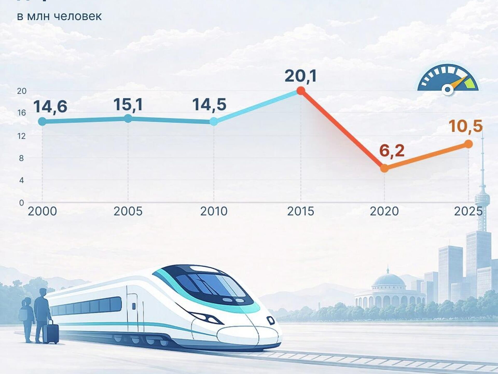 К 2025 году он частично восстановился и достиг 10,5 млн пассажиров.