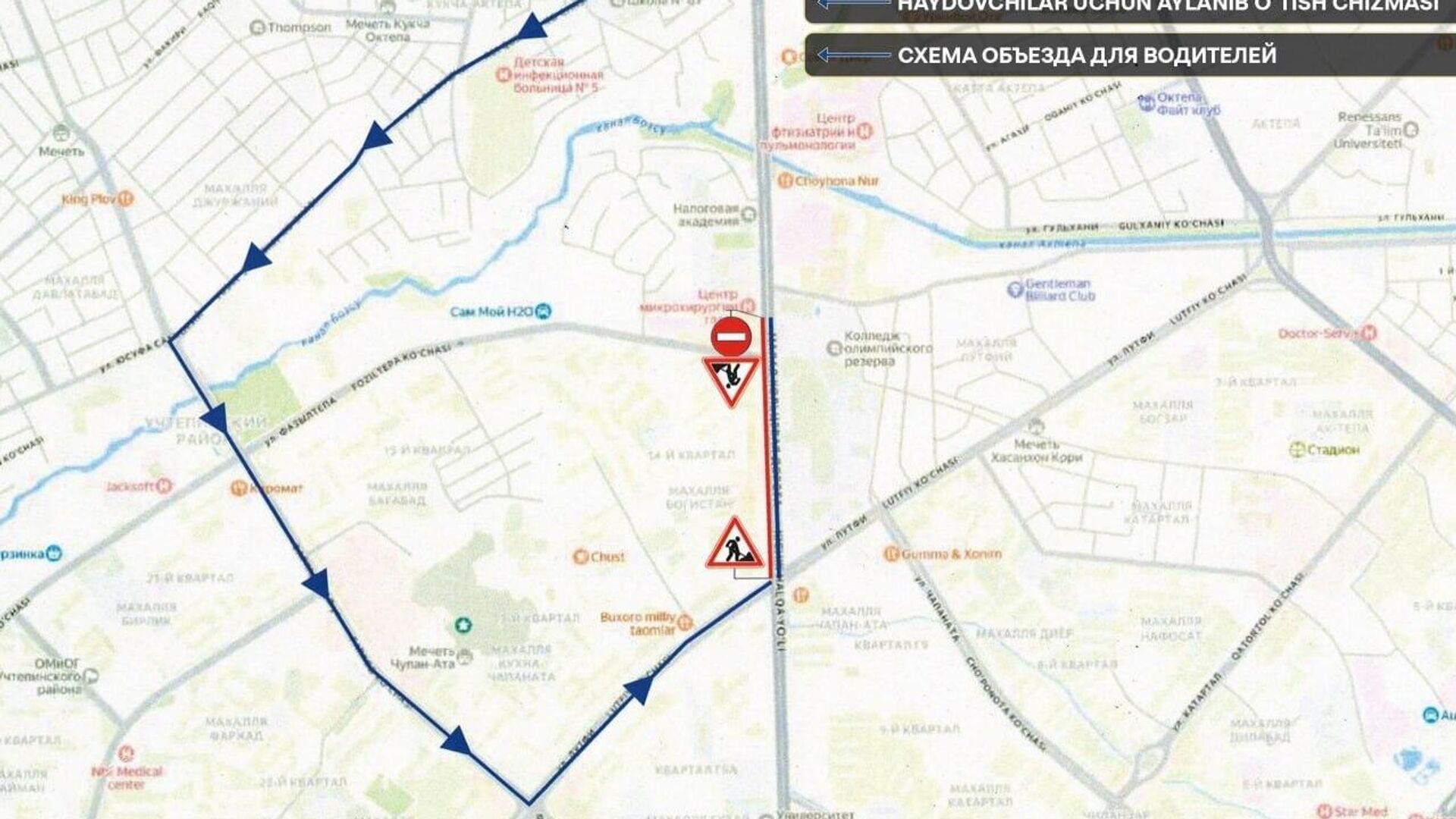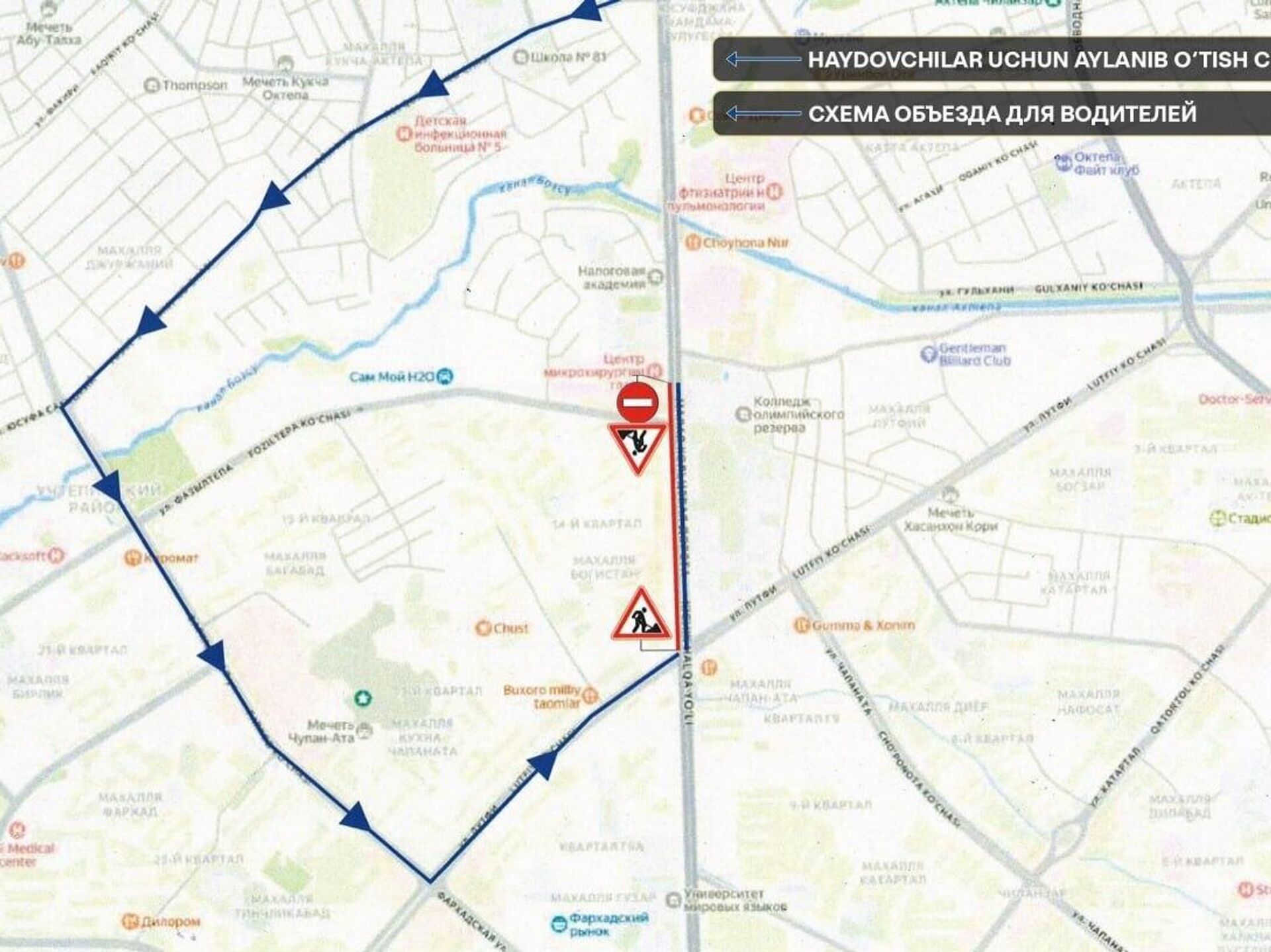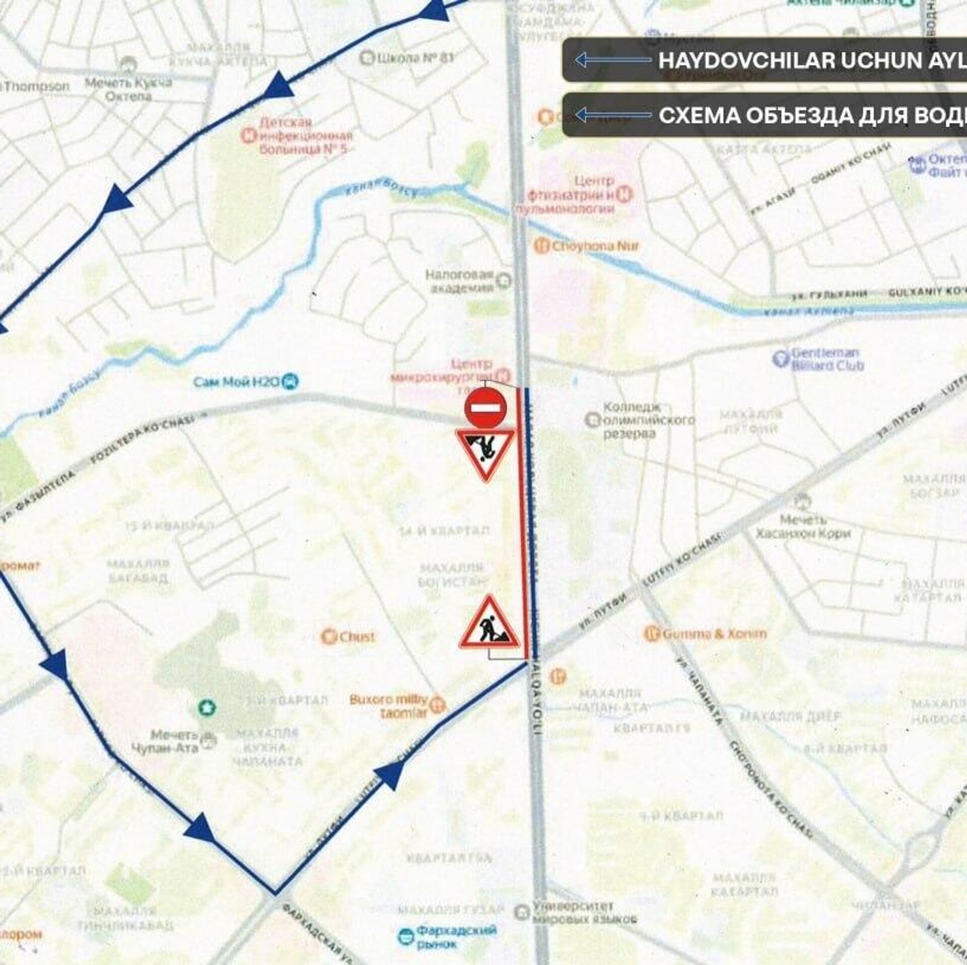 Работы пройдут с 22.00 26 марта до 06.00 28 марта и затронут участок с односторонним движением в Учтепинском районе — от Республиканского центра микрохирургии глаза до пересечения с улицей Лутфи.