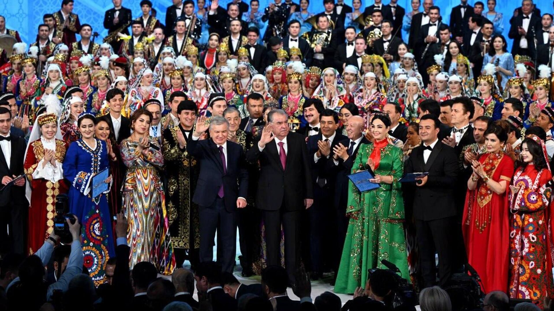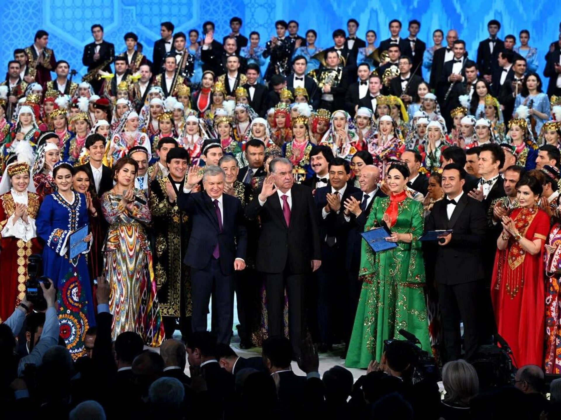 Президенты Узбекистана и Таджикистана приняли участие в совместном концерте мастеров искусств.