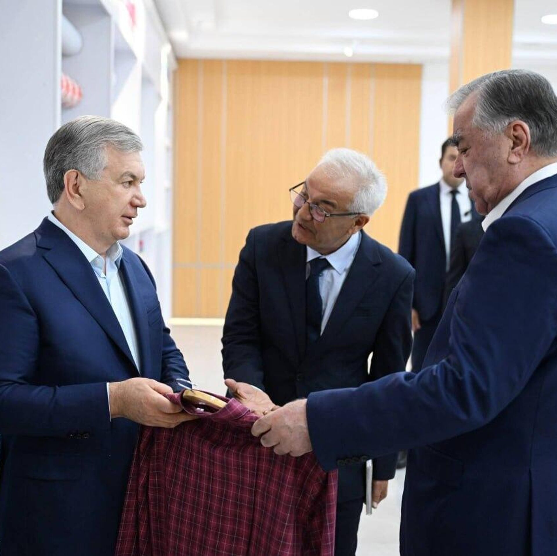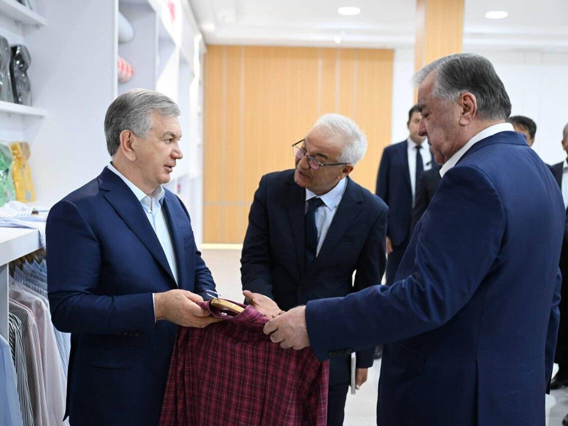 Шавкат Мирзиёев и Эмомали Рахмон посетили текстильную фабрику в Бухарской области.