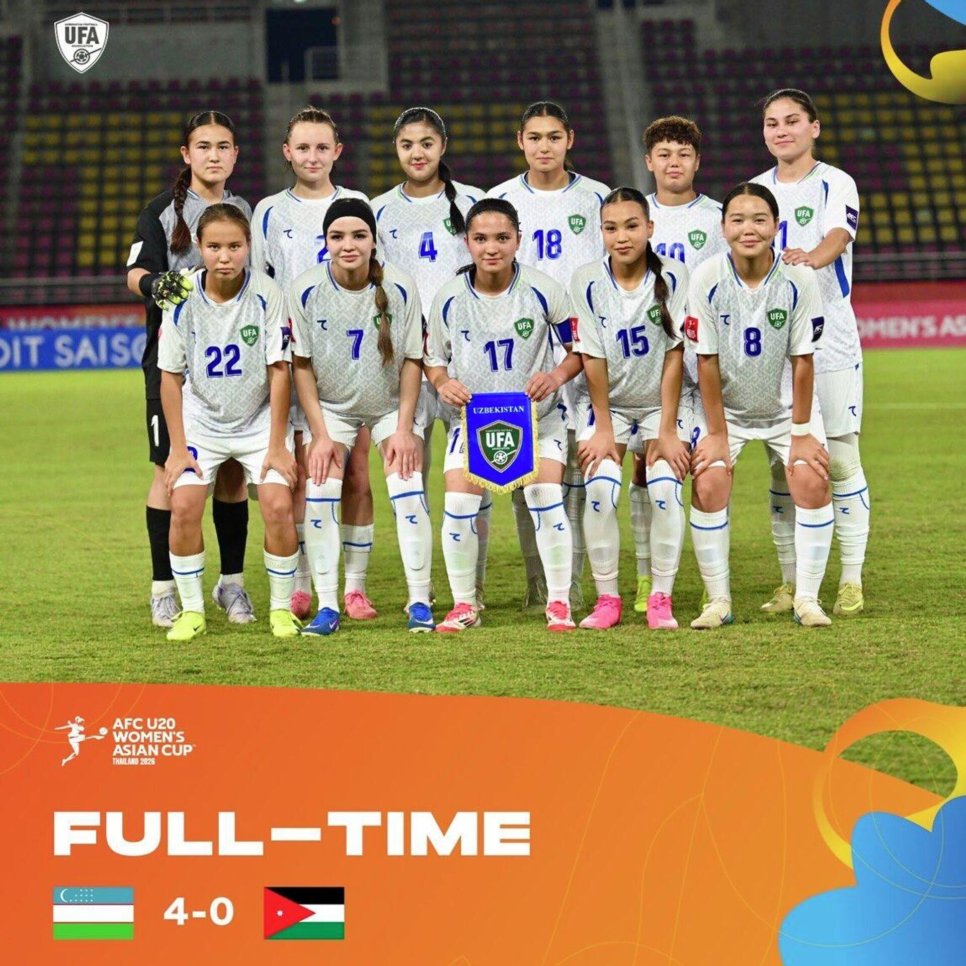 Женская сборная Узбекистана по футболу U-20 на Кубке Азии обыграла Иорданию.