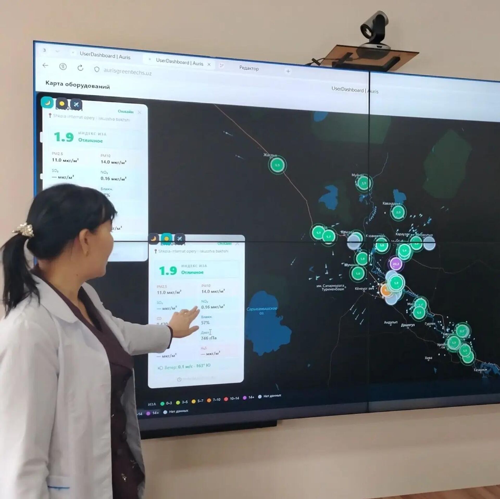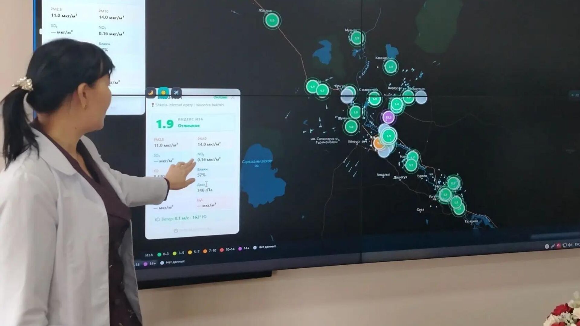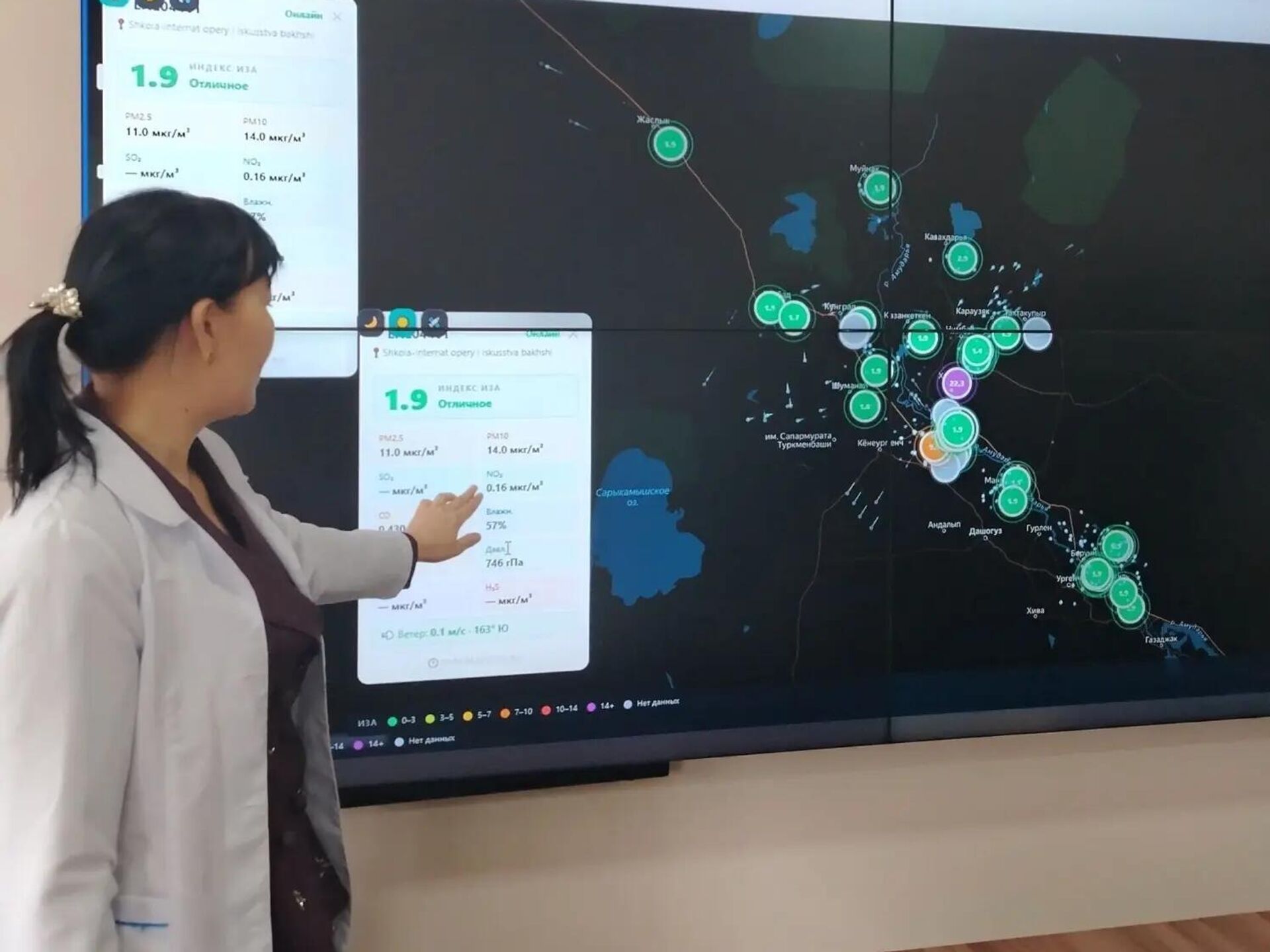 ТАШКЕНТ, 20 апр — Sputnik. Узбекистан совместно с ПРООН установил в Приаралье 37 станций онлайн-мониторинга воздуха, сообщает Нацкомитет РУз по экологии. О результатах данного проекта рассказали Постоянному представителю ООН в Узбекистане Акико Фудзии в ходе ее посещения Ситуационного центра, созданного при Комитете по экологии и изменению климата Республики Каракалпакстан.Как отмечалось, станции онлайн-мониторинга воздуха в режиме реального времени измеряют мельчайшие и наиболее опасные частицы в воздухе (PM2.5 и PM10), токсичные газы (CO, NO₂, O₃, H₂S), а также метеорологические показатели (температуру, влажность, давление и скорость ветра).Автоматическое обновление данных через систему AURISGREENTECH снижает влияние человеческого фактора и обеспечивает 100% точность информации.Интерес гостьи также вызвала работа Испытательной лаборатории системы комитета. В ней есть все условия для анализа проб воды, почвы и воздуха в соответствии с международными стандартами. Это позволяет не только определять уровень загрязнения, но и прогнозировать экологические риски, а также разрабатывать оперативные решения.
