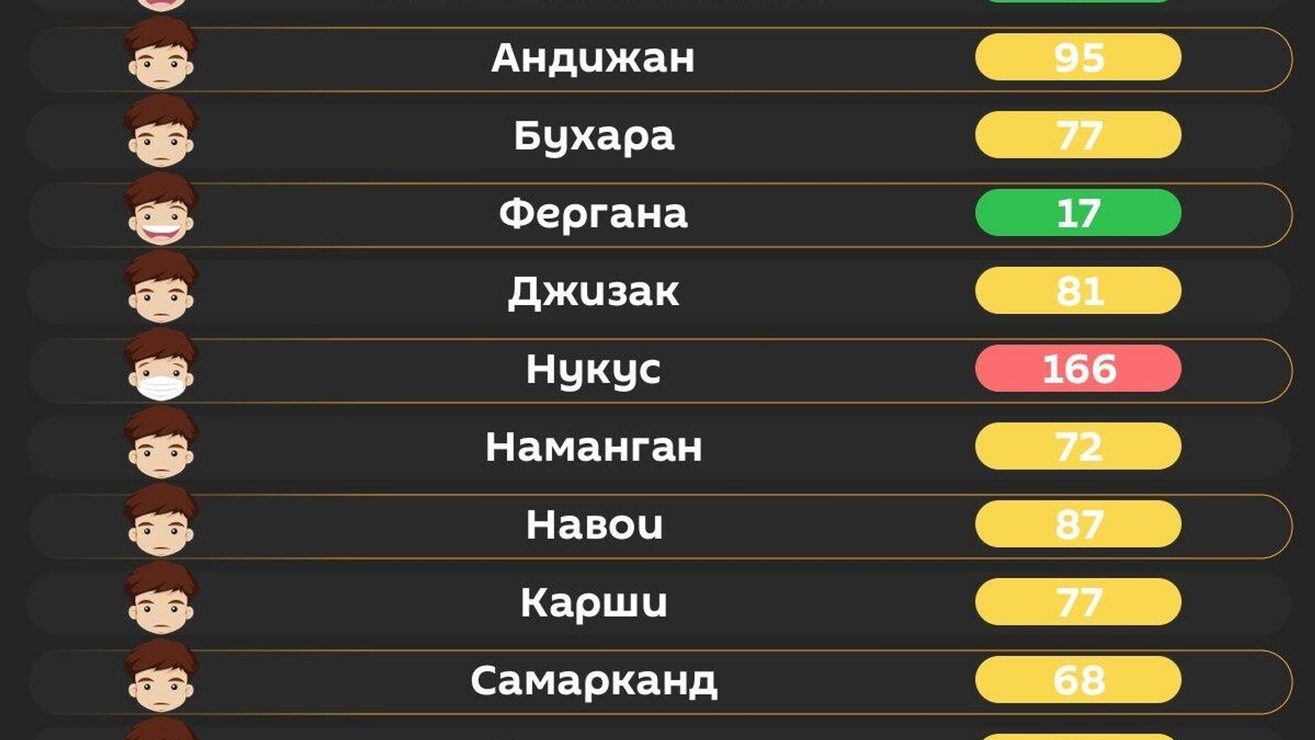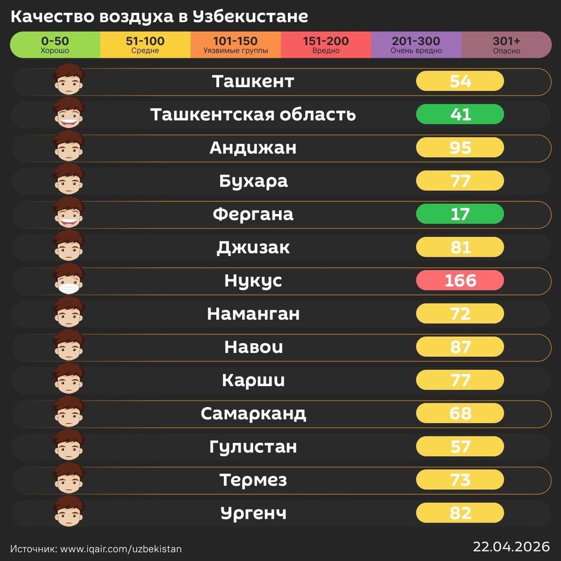 Качество воздуха в других регионах республики – в инфографике @SputnikUzbekistan.